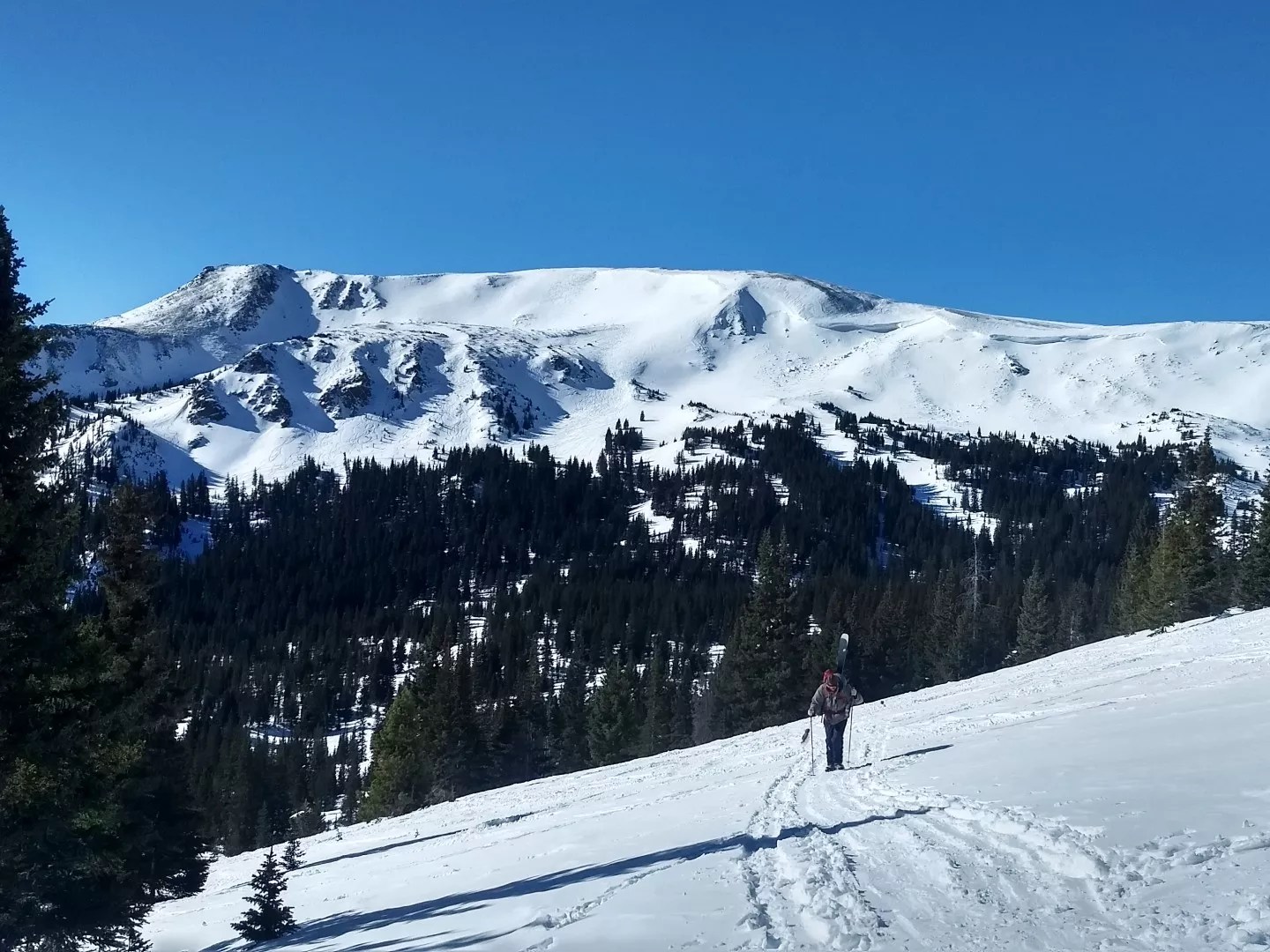 Quandary Peak is one of Colorado’s most popular fourteeners, regardless of season. Even in winter, the East Ridge approach is frequently traveled and is the best route for beginner backcountry skiing, as it’s less technical and poses fewer avalanche risks. Get your start early, as sunlight will likely cause post-holing — when you sink into the snow — by mid-morning. Novices to the sport will want to take the Quandary Peak Northeast Bowls back to the parking lot. Be sure to keep an eye out for mountain goats at the summit!
