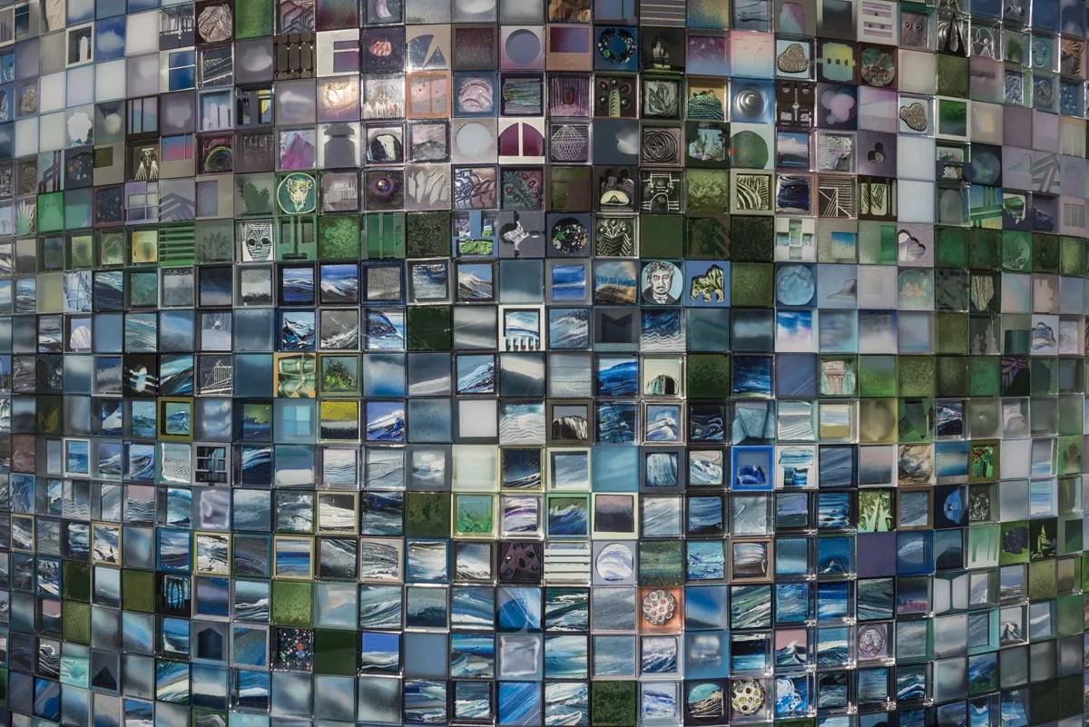 The feel-good engagement of the DAM show is flipped on its head for Jonathan Saiz – Colorado Coastal at K Contemporary. This installation is more modest in scope, but still staggeringly ambitious: Instead of 10,000 works, there are “only” 1,000. These are all about a dark future, one in which Colorado is under water owing to global warming. While Saiz knows this scenario is unlikely given the state’s elevation, he explains that he’s using sea-level rise as a metaphor that enables him to address the environment.
