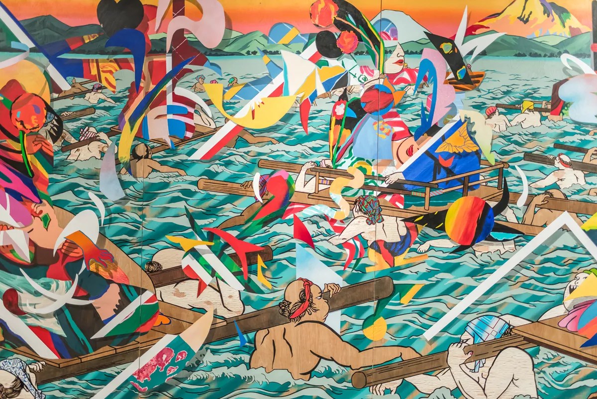 “The Rafts,” by Diego Rodriguez-Warner, mixed media on panel.
