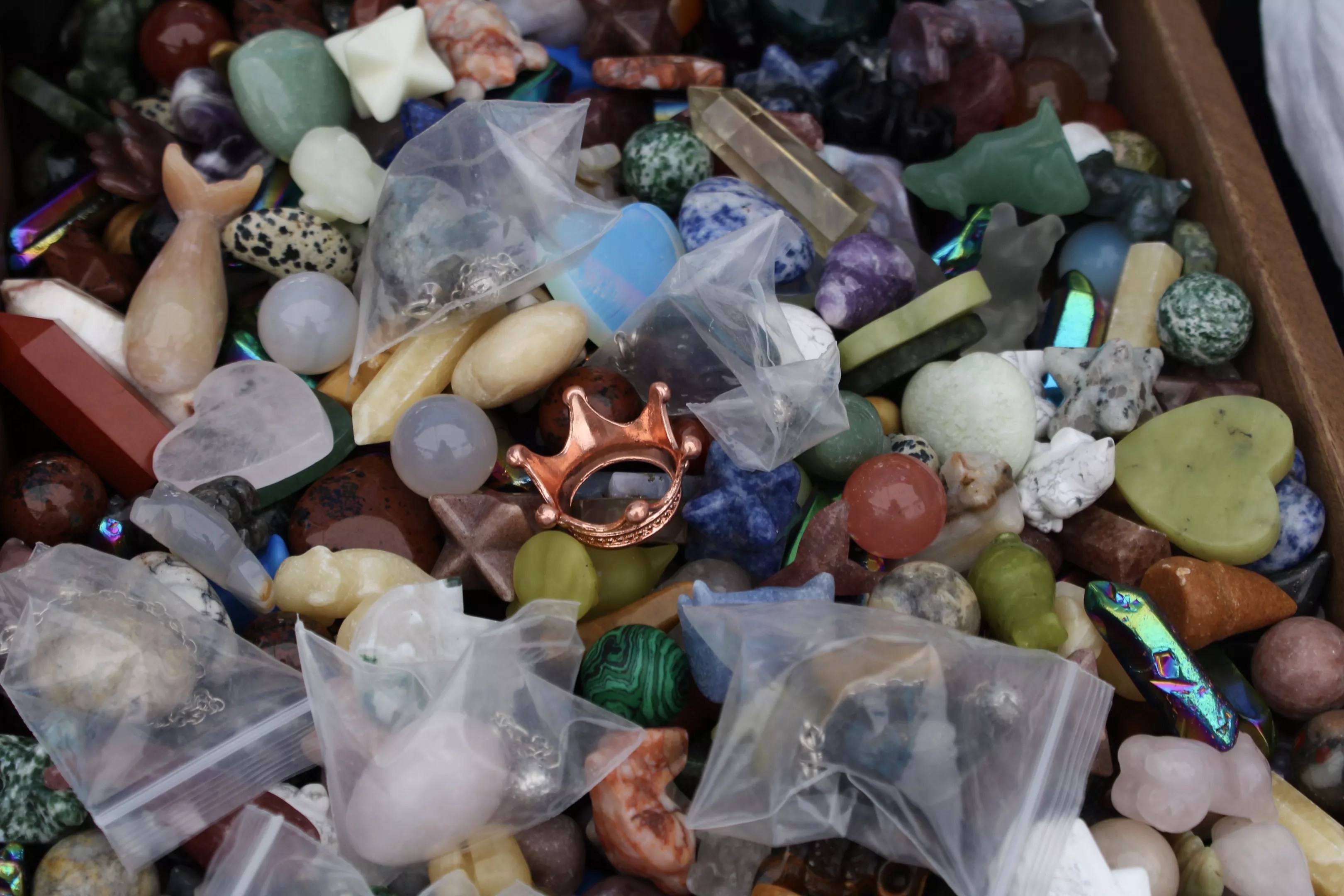 Crystals and trinkets for sale at one of the booths.