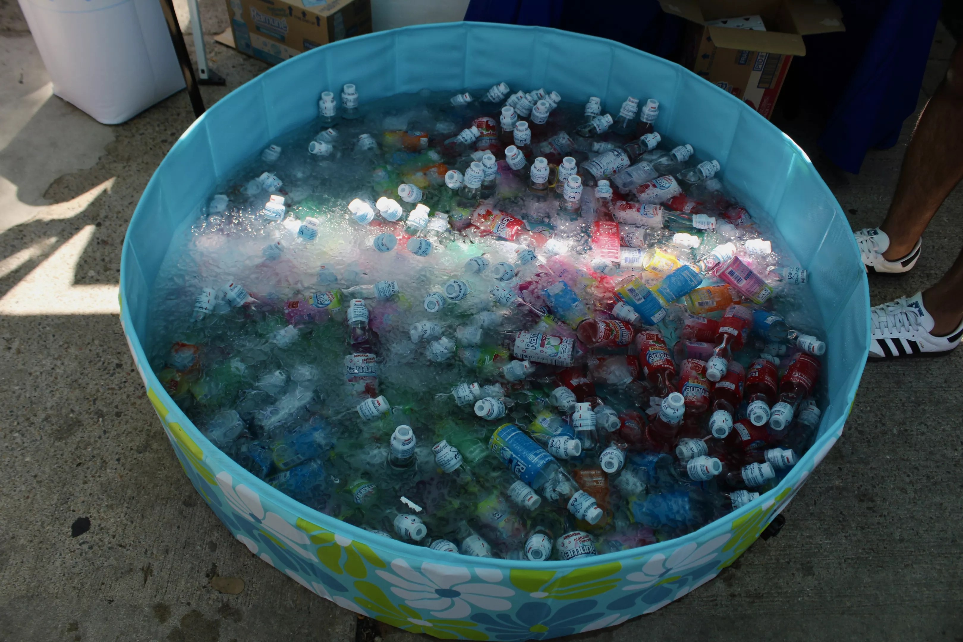 A kiddie pool full of bottles of ramune at the 51st Cherry Blossom Festival.