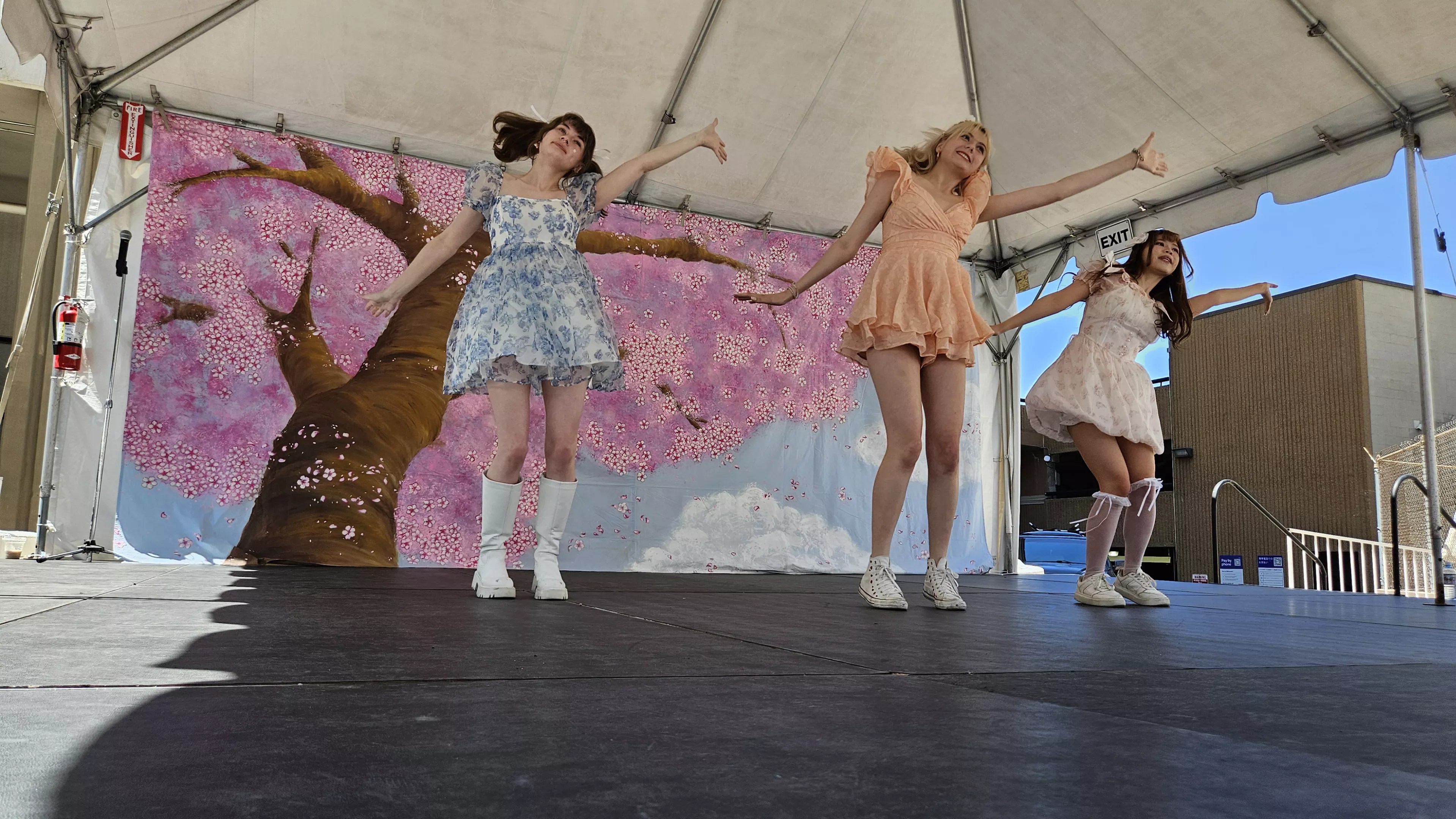 A dance idol group performs at the Cherry Blossom Festival.