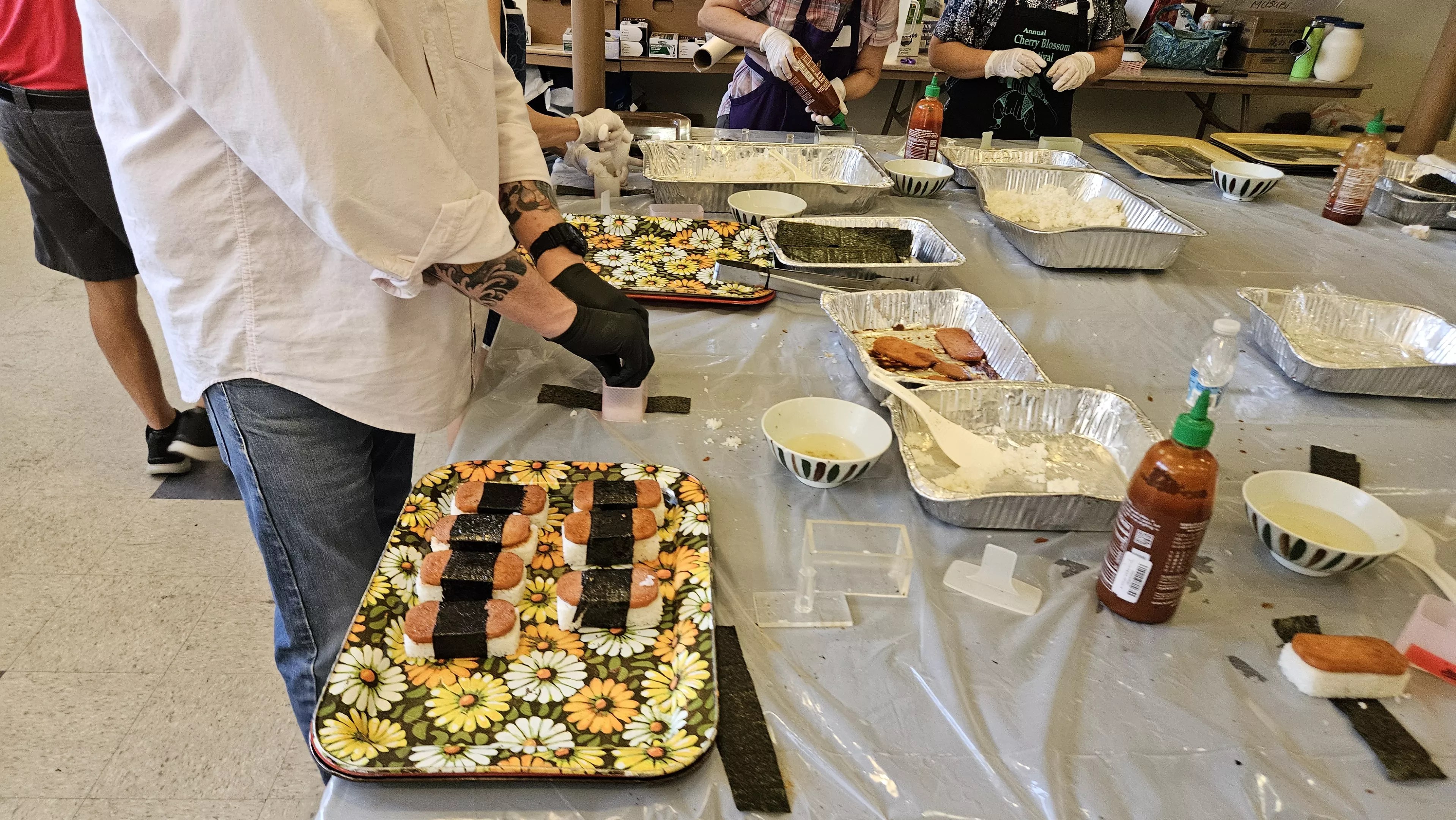 Spam musubi being prepared at the Cherry Blossom Festival.