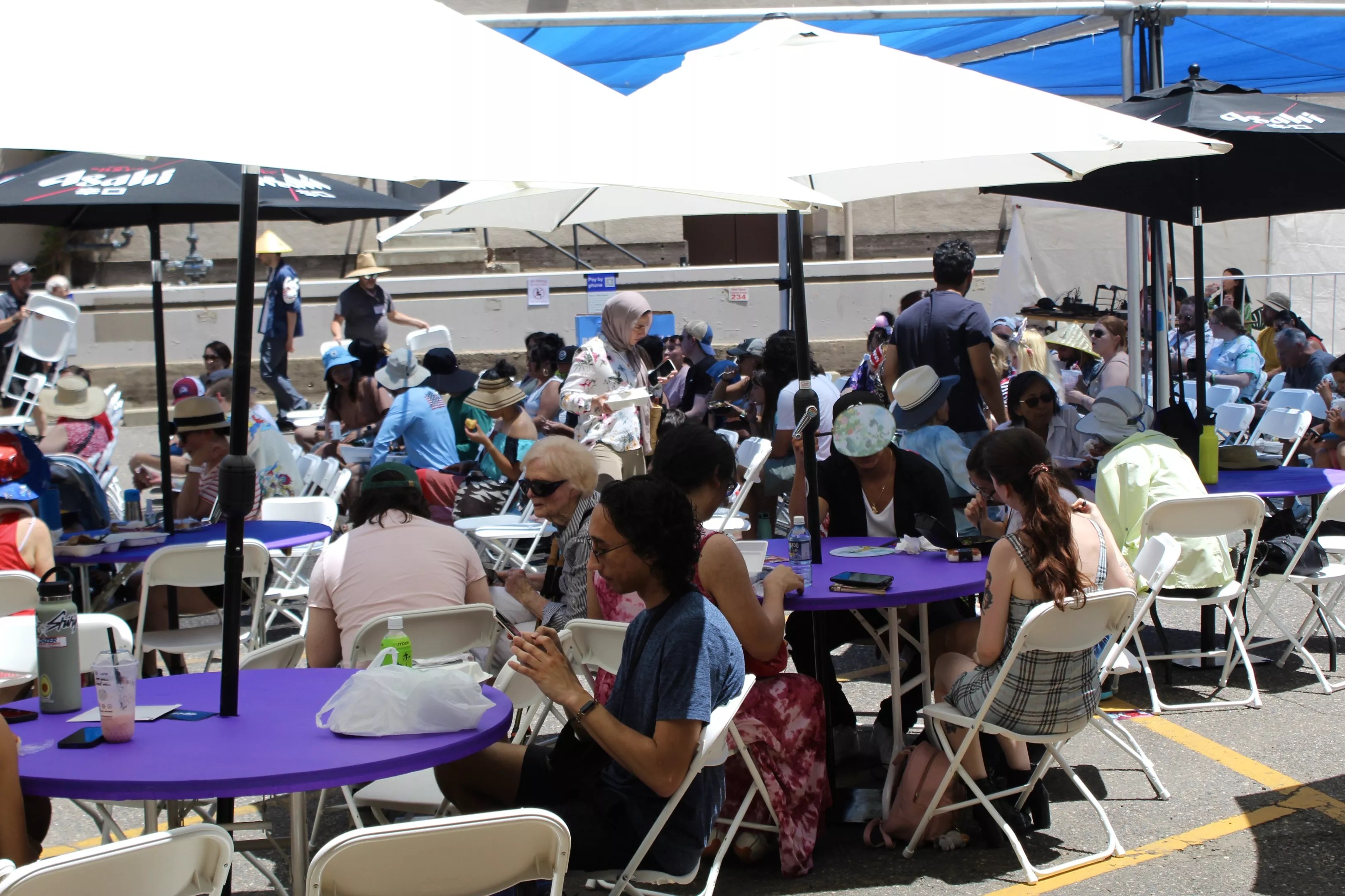 People found air-conditioned relief (and groceries) at Pacific Mercantile, bought cold bottles of ramune from a kiddie pool filled with the popular carbonated drinks, and stood in line for snow cones that came in a dozen flavors. The festival closed a portion of Lawrence Street for a lineup of vendors and entertainment, including Enka singers, taiko drumming, dances, martial arts and more.