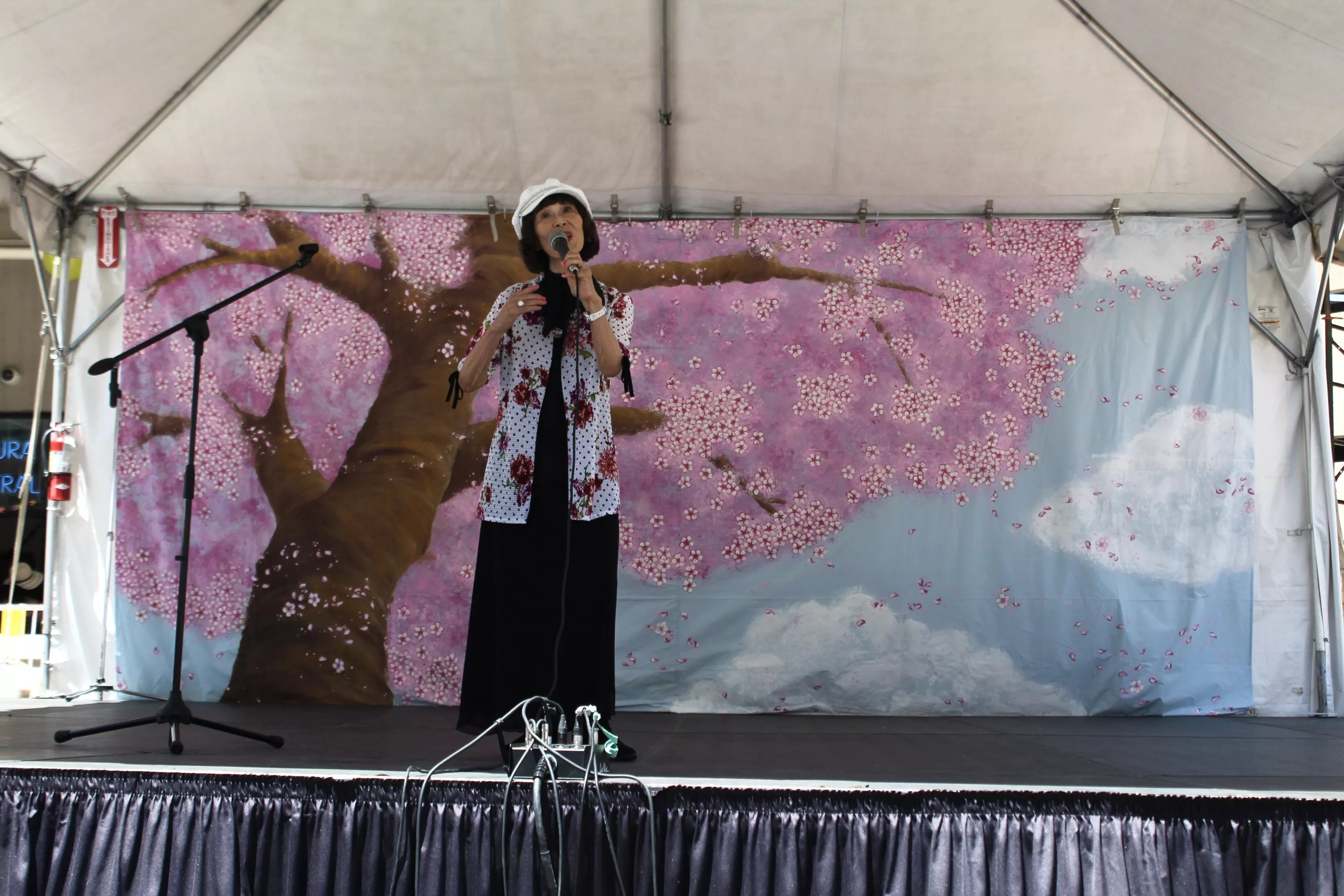 Enka singer Lizzie Hildebrandt performs “Tokyo Banka” at the Cherry Blossom Festival.