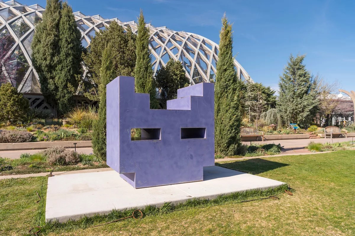 Outdoor sculpture shows are mounted every year at the Denver Botanic Gardens, and it’s hard to imagine a better setting for artworks, especially in spring, when everything is budding out. The latest offering, Pixelated: Sculpture by Mike Whiting, comprises over a dozen of the artist’s signature boxy sculptures, and the hard edges of his forms contrast beautifully with the soft edges of the plantings in the gardens.
