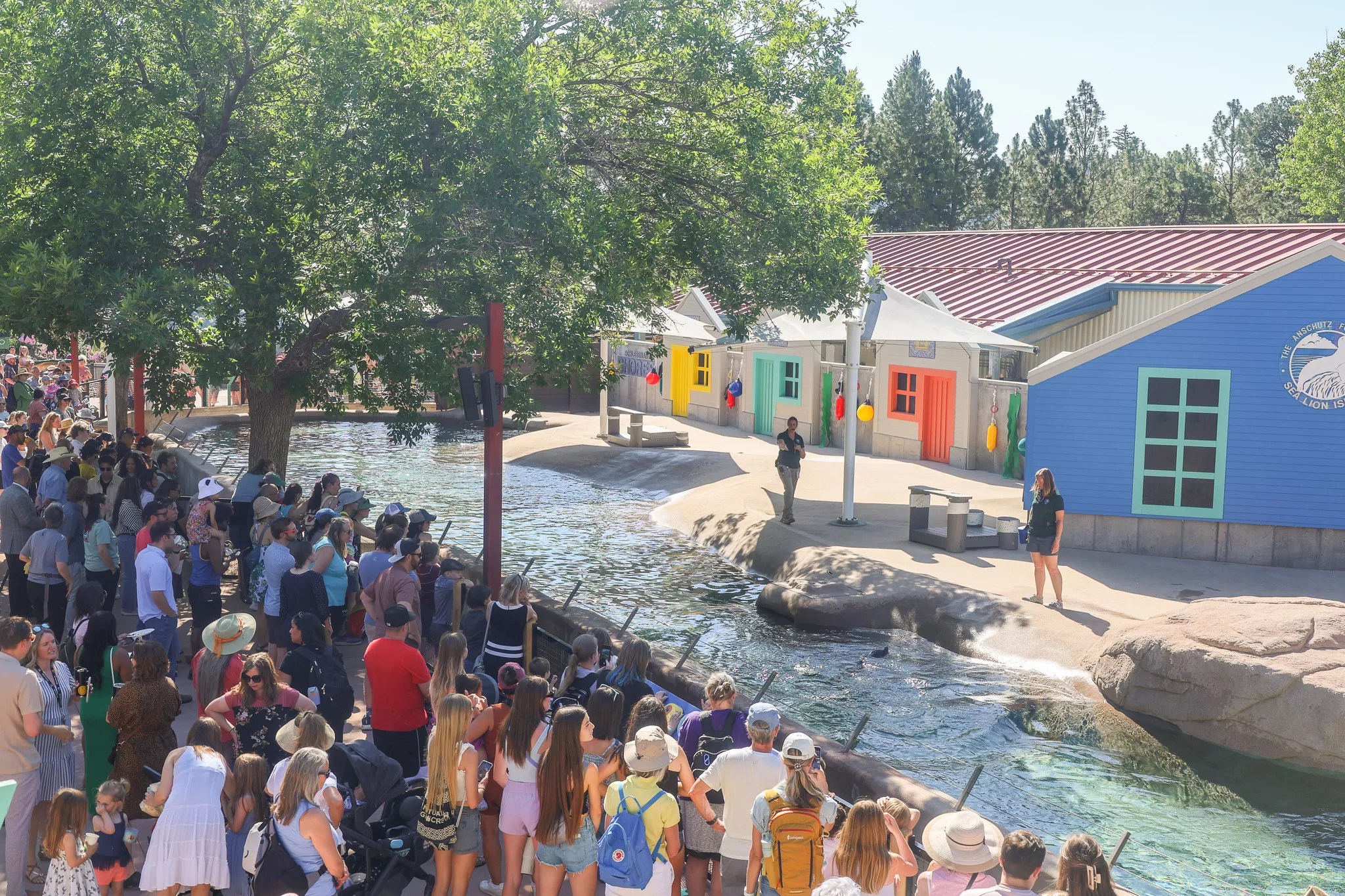 Technically, the animals now live at “Schlessman Shores,” a beach area with a vibrant façade of homes reflecting the real-life communities where sea lions and people coexist.
