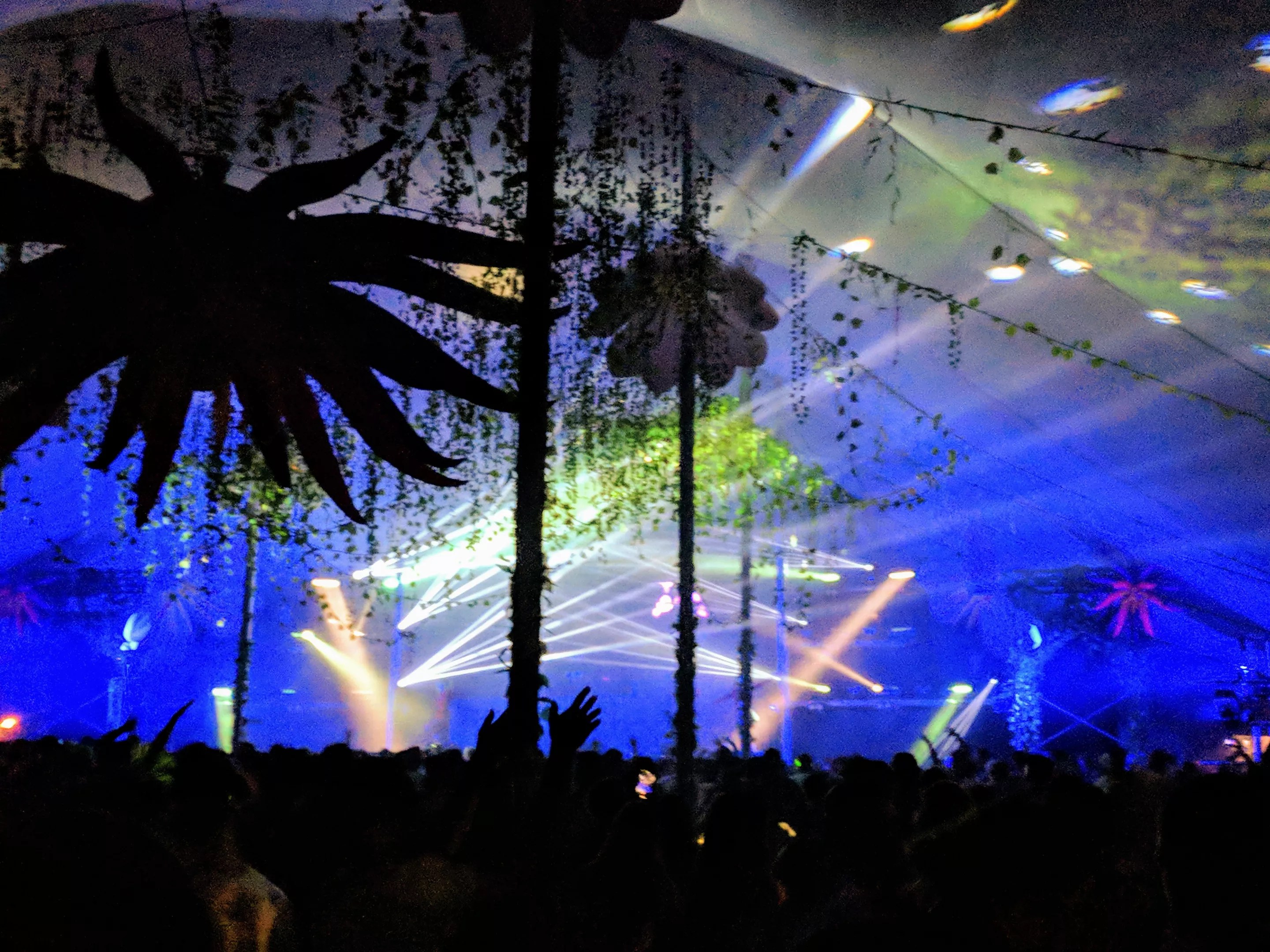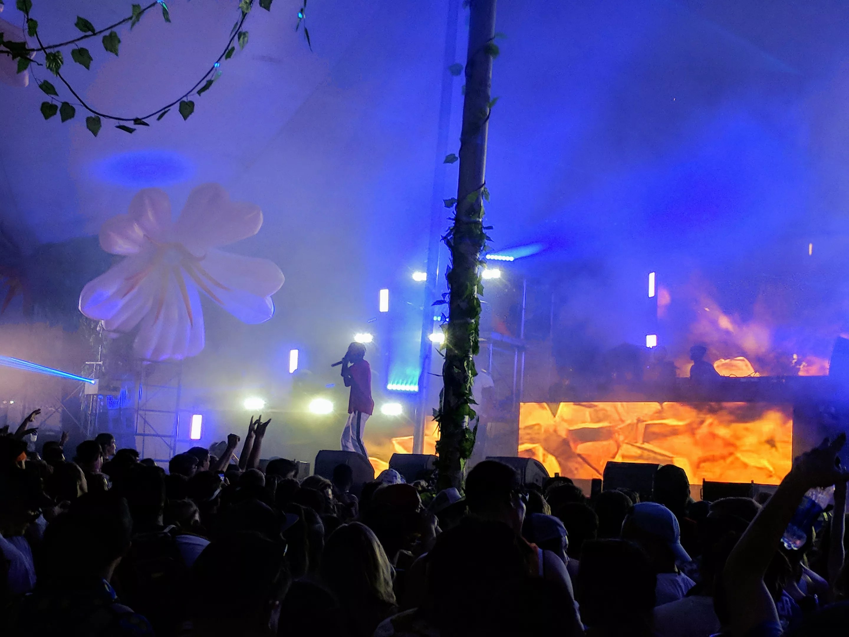 The Amazon Stage was decorated like a very green jungle overflowing with vegetation.