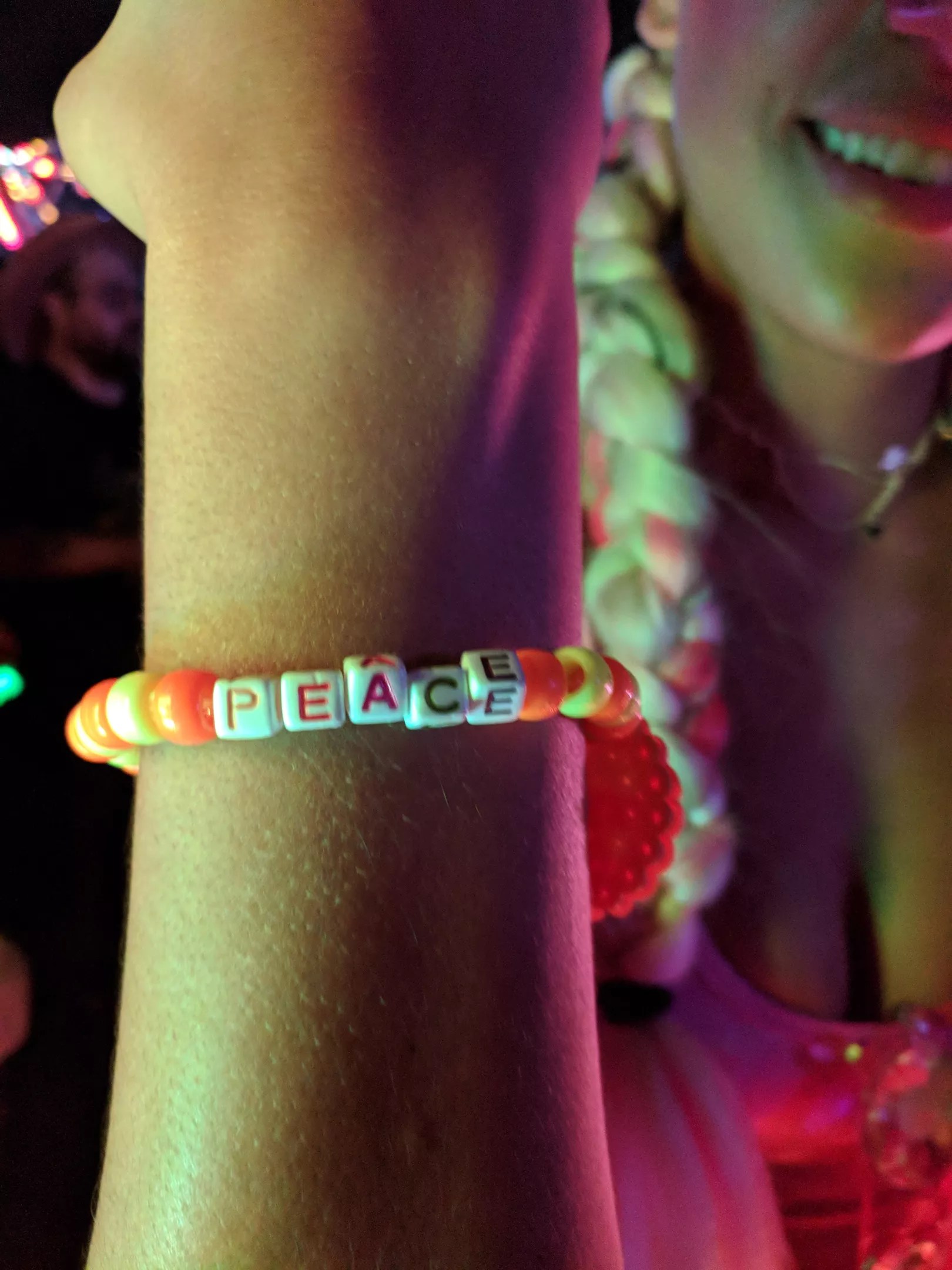 Colorful beaded bracelets, or “candy,” are a classic rave accessory.