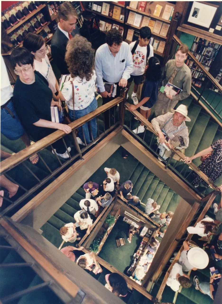 In 1994, Barnhouse enrolled in classes at the University of Colorado Denver and took a job at the Tattered Cover. “It’s very hard to convey how wonderful it was to work at the store at that time,” Barnhouse says. “Truly, I looked forward to reporting to work — there was never any sense that it was just a job, even though the pay was very, very low — $5 an hour in 1994, $7.80 when I left in 2000. I got to sell books, magazines and newspapers to famous (for Denver) people all the time, and once in a while, a true celebrity would walk in. I got to meet one of my literary heroes, the late, great David Foster Wallace. I was there when Hillary came to sign It Takes a Village in 1996. I was in LoDo for Jon Krakauer’s Into Thin Air, when a thousand people showed up and we didn’t leave the store until midnight. I got to know the regular customers, including a former Denver mayor, Quigg Newton, who came into Cherry Creek most days to pick up a copy of the New York Times.”