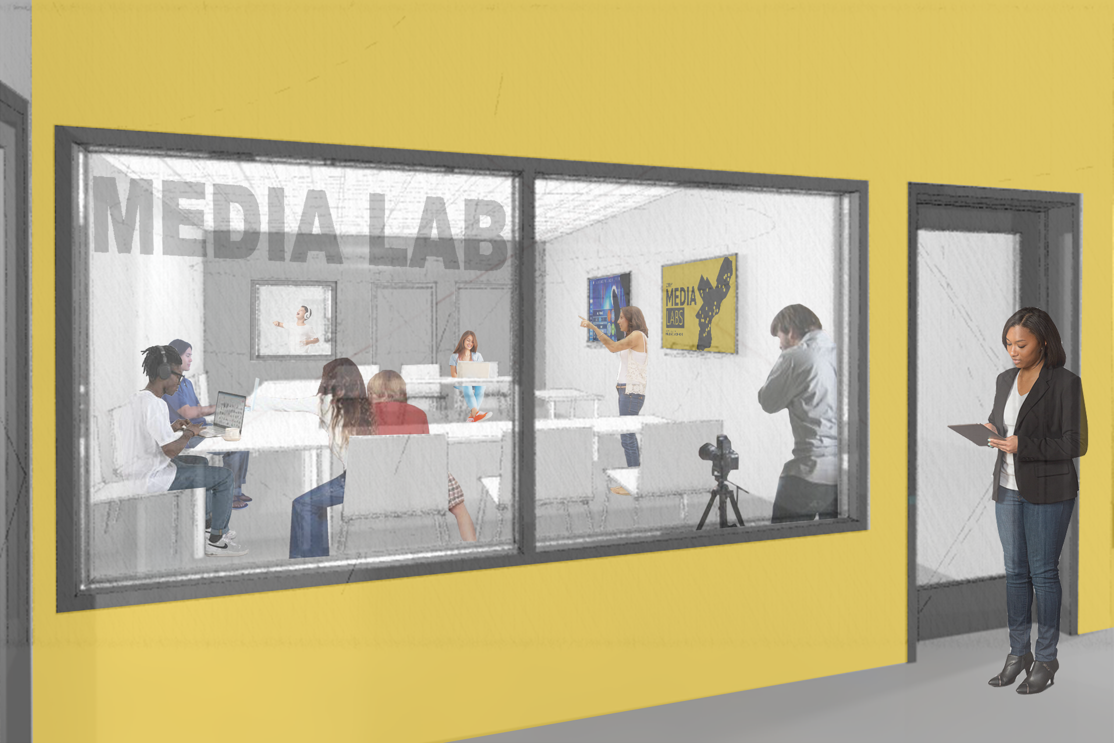 Envision the media lab at Las Bodegas during free pre-construction tours beginning in August.