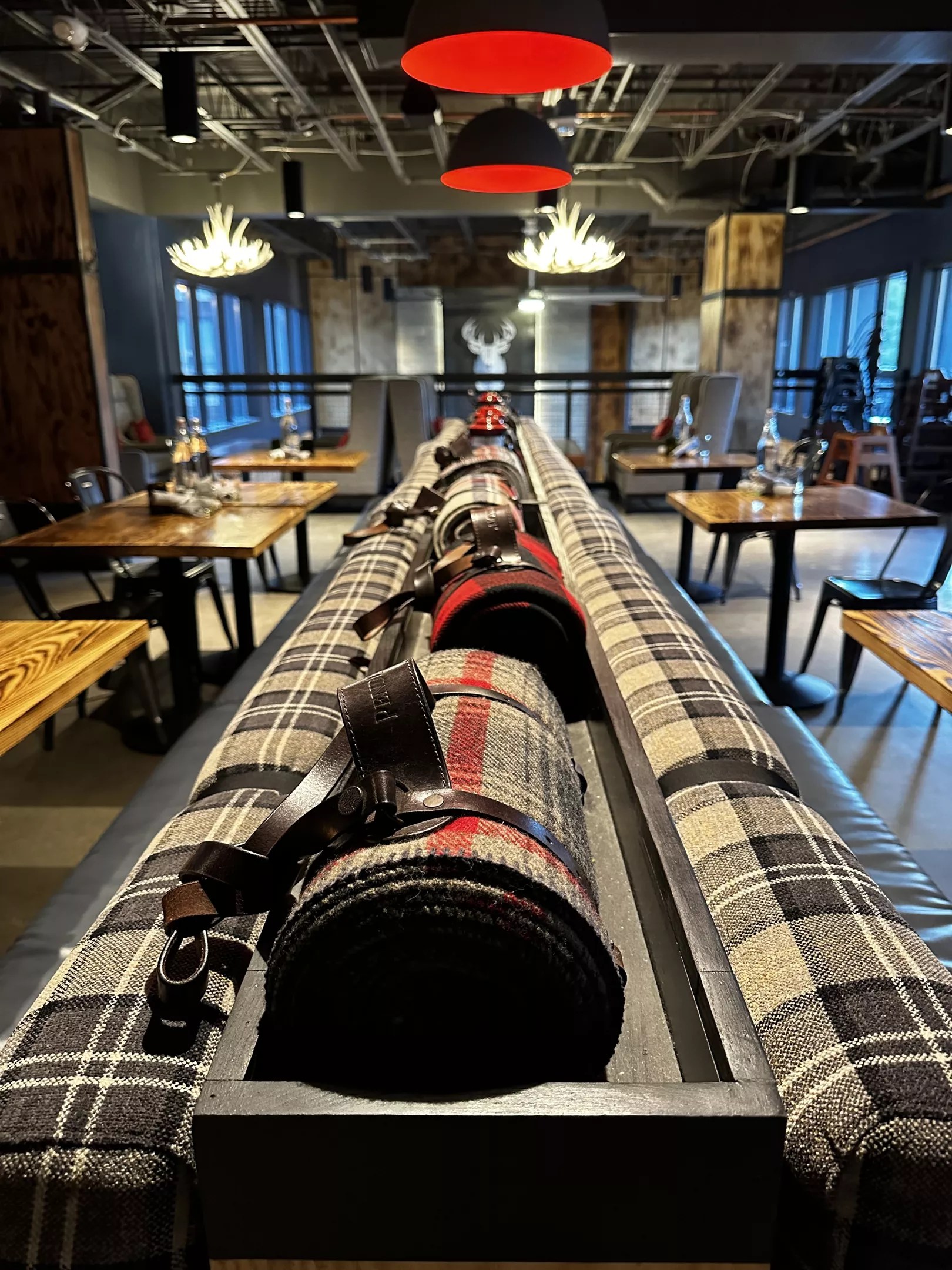 Inside the restaurant, our vocabulary was suddenly limited by our surroundings, as we could not stop talking about the cozy and cute atmosphere. Everything was cozy. Everything was cute. We were those girls. The rustic cabin decor and spacious layout make this the perfect dining experience for an evening in Breck. My favorite parts were the vintage camping gear behind our table and the rolled-up vintage camping blankets. There’s even a quaint patio with a mountain view. We found a table inside nestled toward the back and settled in with cocktails.