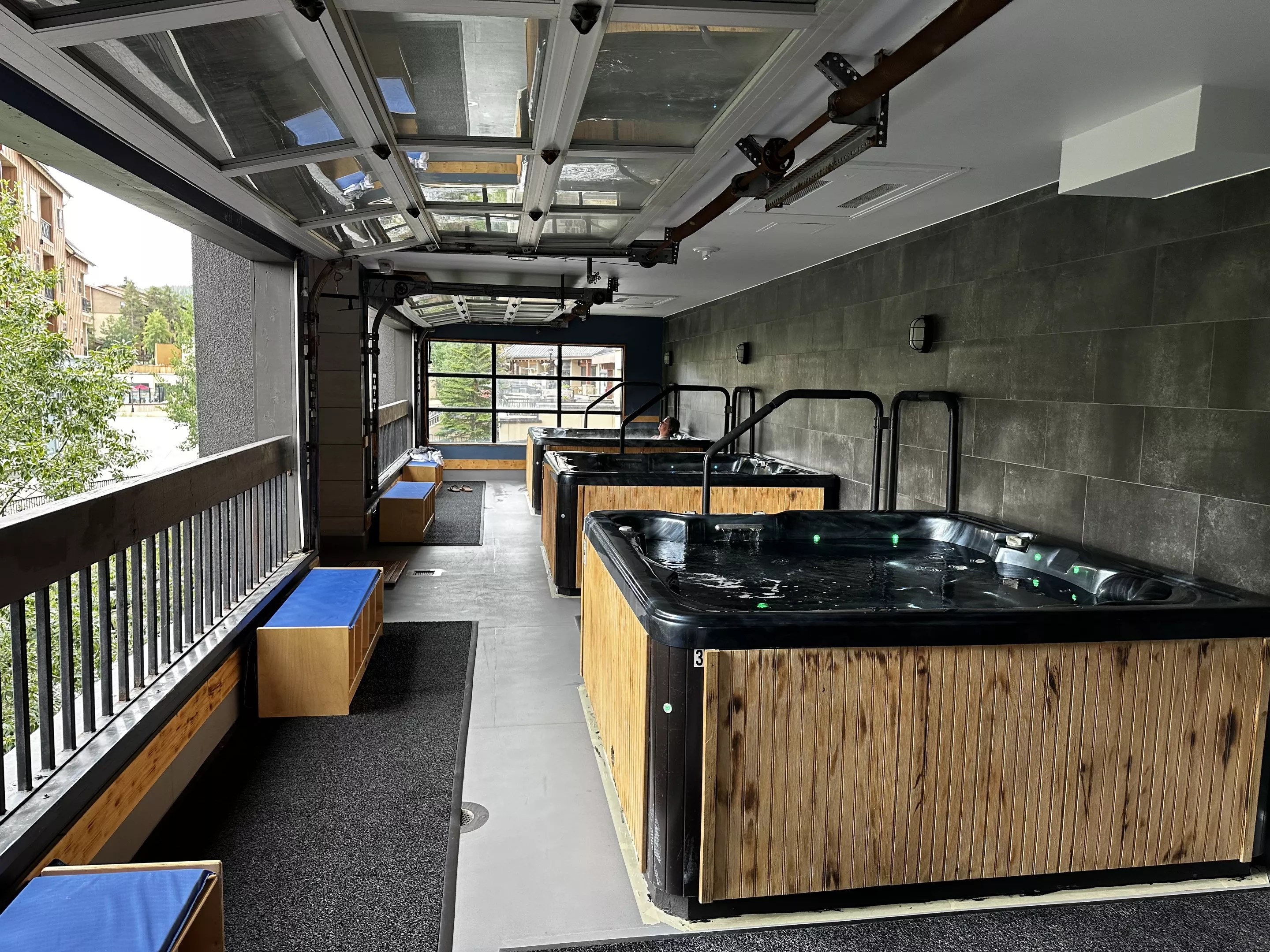 Our last activity during our stay was a stop by The Onsen, Gravity Haus’s Japan-inspired dry sauna, hot tubs and cold plunge. The hot tubs also sit before open garage doors that overlooked the Blue River, allowing guests to reset and restore to the sounds of nature.