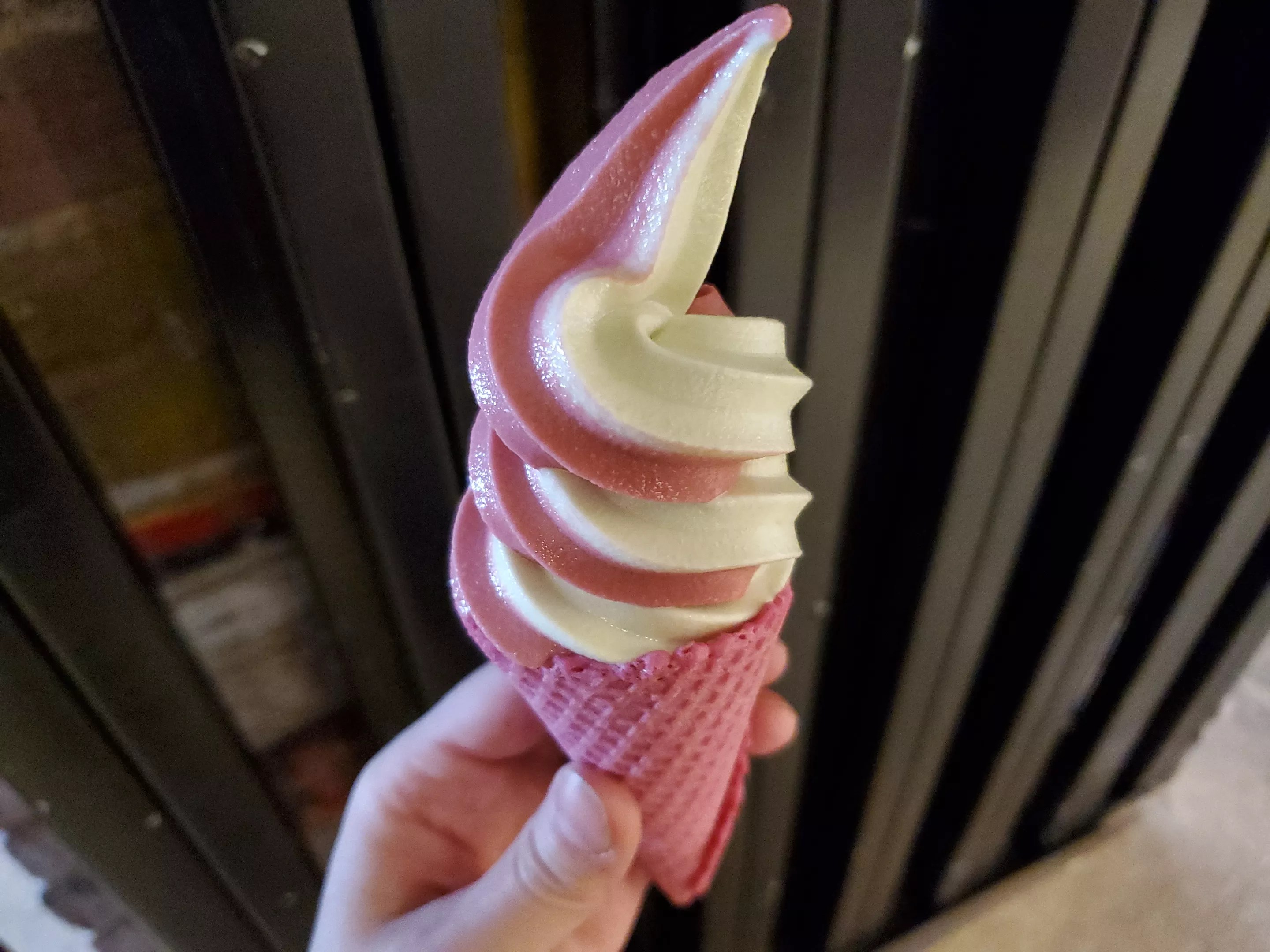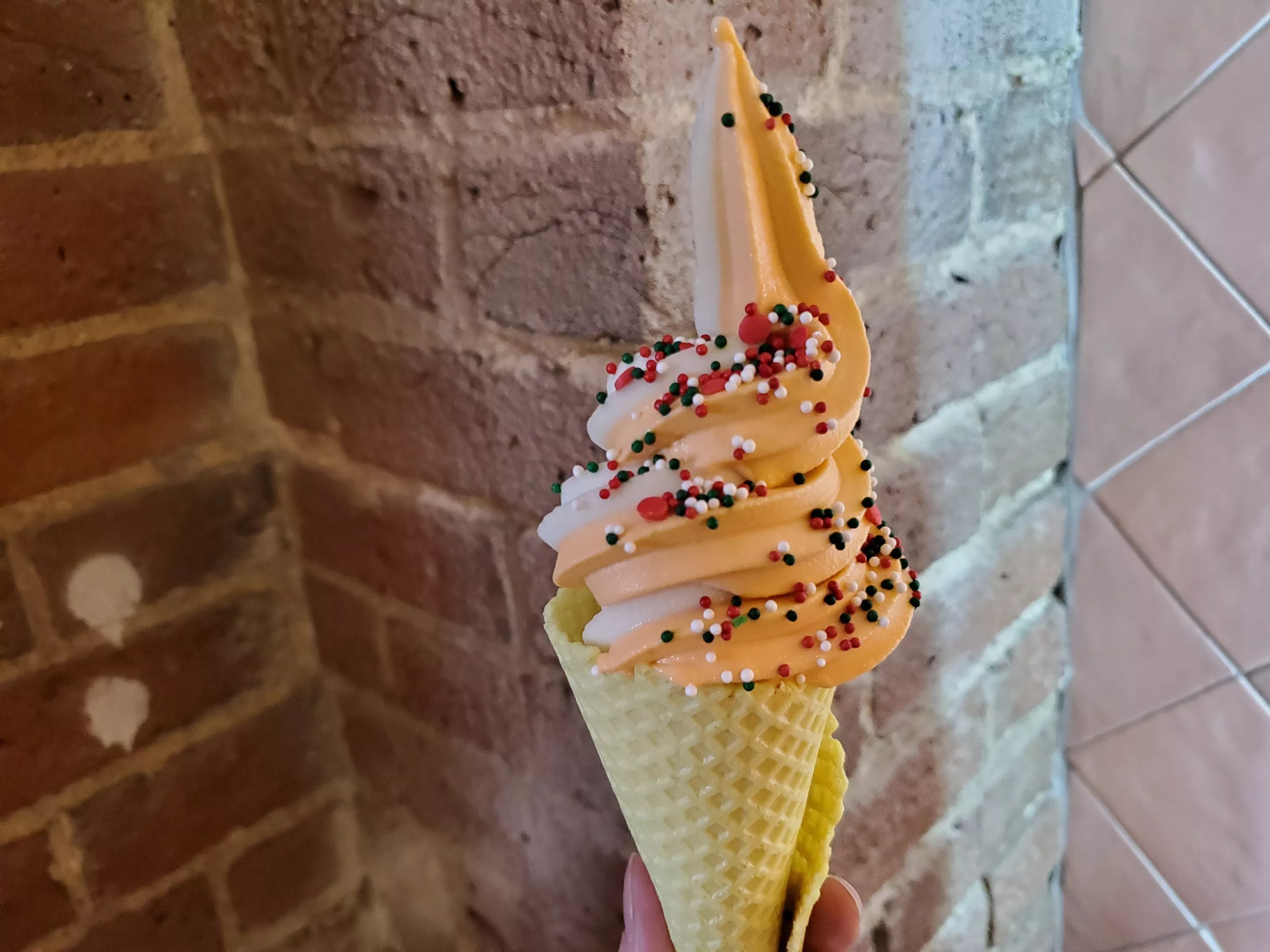 Vegan coconut and Thai iced tea soft serve swirled at Melted.