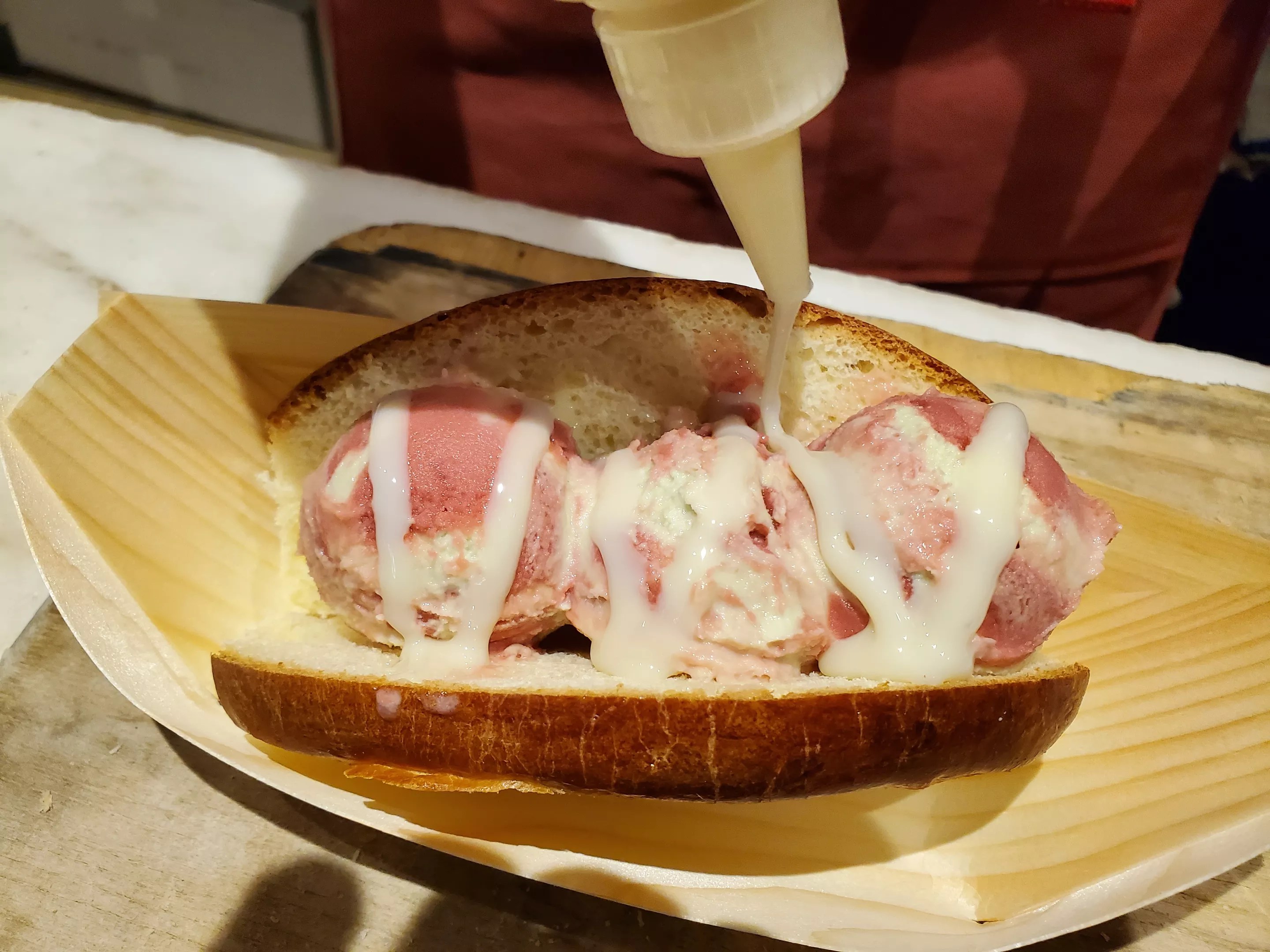 The idea, he says, was to do something different on the dessert front. After garnering inspiration from his time in Thailand in 1999 and feeling sentimental about the ice cream sandwich carts he would visit, Dayton decided on a mix of Thai milk-bun ice cream sandwiches and soft serve ice cream in uncommon flavors.