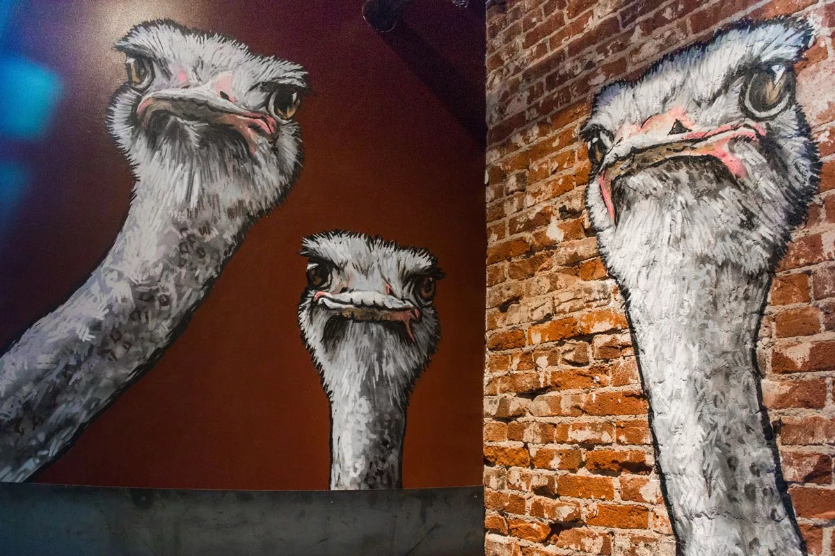 In contrast, Acova (in Italian, the name means nest – or, more accurately, to sit on eggs) is contemporary, whimsical and welcoming, with ostrich heads painted on exposed brick, a host stand made from a repurposed Patsy’s pasta maker, and blue pendant lamps. Garage windows flood the corner bar with sunlight. The dining room is minimally adorned, relying on cool lighting and wood-and-metal booths to create a clean aesthetic. The space could easily double as a cider house or brewpub, but it’s got the makings of something more: a neighborhood gathering place, similar to the Hornet…which is owned by the same people who bought Patsy’s.