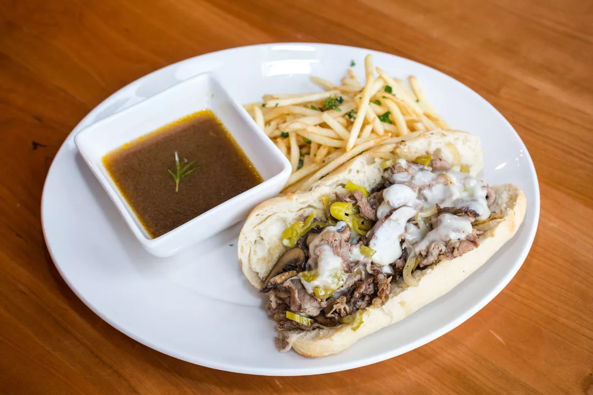 Philly style French dip satisfies.
