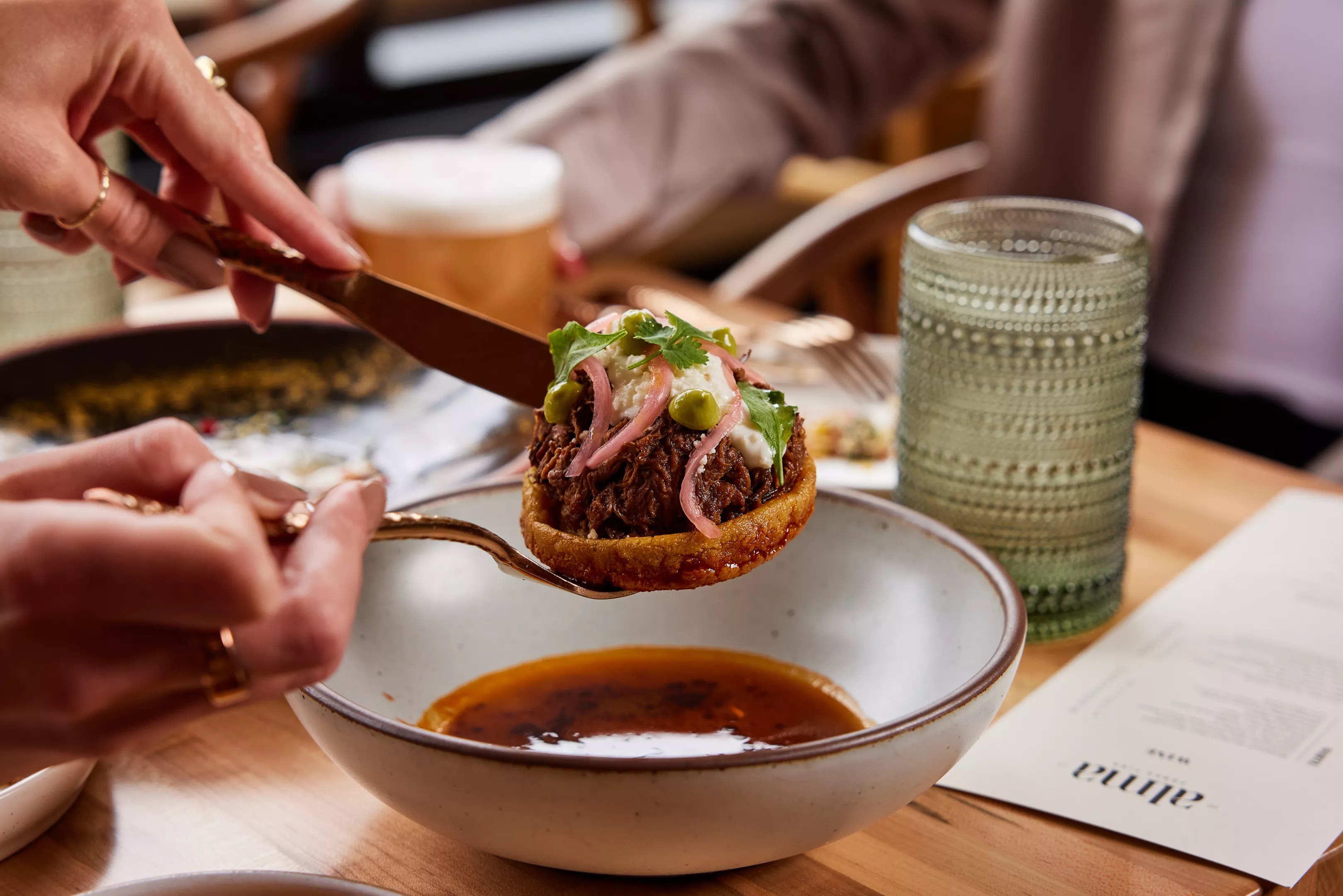 Johnny Curiel stands behind the counter at Alma Fonda Fina like he’s ready to pounce. There’s more than technique guiding his movements as the chef assembles the pieces of a tuna tostada with smashed avocado, salsa macha, and dollops of mayonnaise that has been infused with the nutty tang of chicatana ants. Curiel’s got the brassy smile and the coiled energy of a man on a mission: He’s all taste this and try this and I want you to know about this. He was born in Guadalajara and became so determined to bring Mexican excellence to Denver that he and his wife, Kasie, sold their house to raise money for the restaurant. (The gamble paid off: About a year later, the restaurant landed its first Michelin star.) In that spirit, the team at AFF seems incapable of phoning anything in, whether it’s the guacamole (with its anisey purr of hoja santa) or its avocado margarita (with the verdant fat of avocado puree giving the acid-treble cocktail some succulent bass notes). Tortillas, both corn and sourdough flour, have the heft and chew that only human hands can deliver, and the birria de borrego—a prodigious lamb shank towering over a lake of spice—makes osso buco look a wallflower.