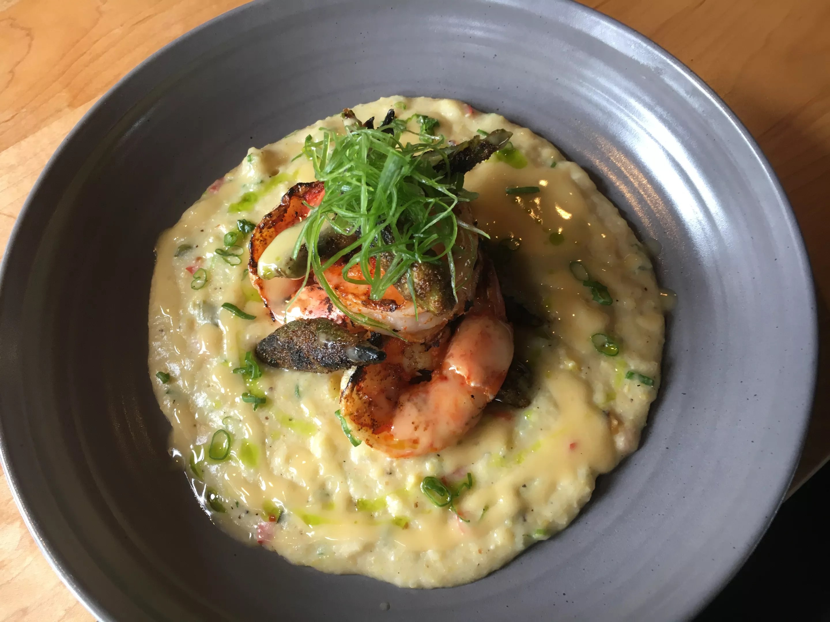The chef’s Southern roots show in his shrimp and grits, a creamy bowl of Grateful Bread stone-ground cornmeal with all kinds of additional perks. Grilled okra accompanies the shrimp, and Tabasco butter (in fact a silky beurre blanc with a little added heat) elevates the dish far above decadent.