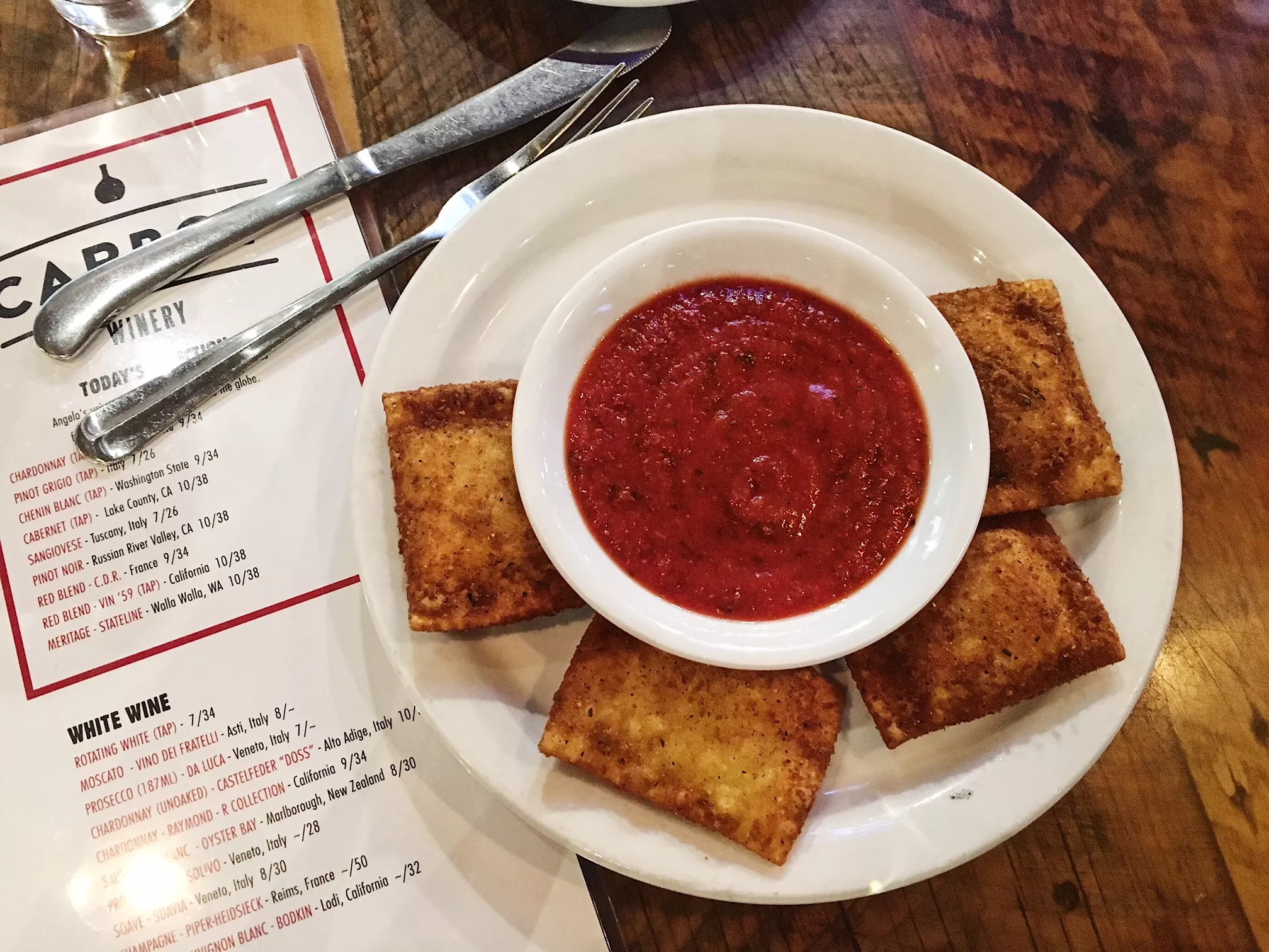Angelo’s wine list pairs better with its other bites, which skew toward red-sauce-based snacks hefty enough to build a meal. Toasted ravioli are particularly pleasurable drinking fare: the soft, whipped-ricotta-stuffed ravioli shells are deep-fried until crispy and served with a dish of tangy marinara ideal for dipping. More dinner-like sustenance can be found in the three varieties of sliders – our pick is the marinara-and-mozzarella-spackled sausage, made from an original Angelo’s recipe – and the eight-inch one-topping pizza, which can be yours for a measly $6. Round out your meal with a discounted Caesar salad, and order another pour to toast the future – while paying prices from the past.