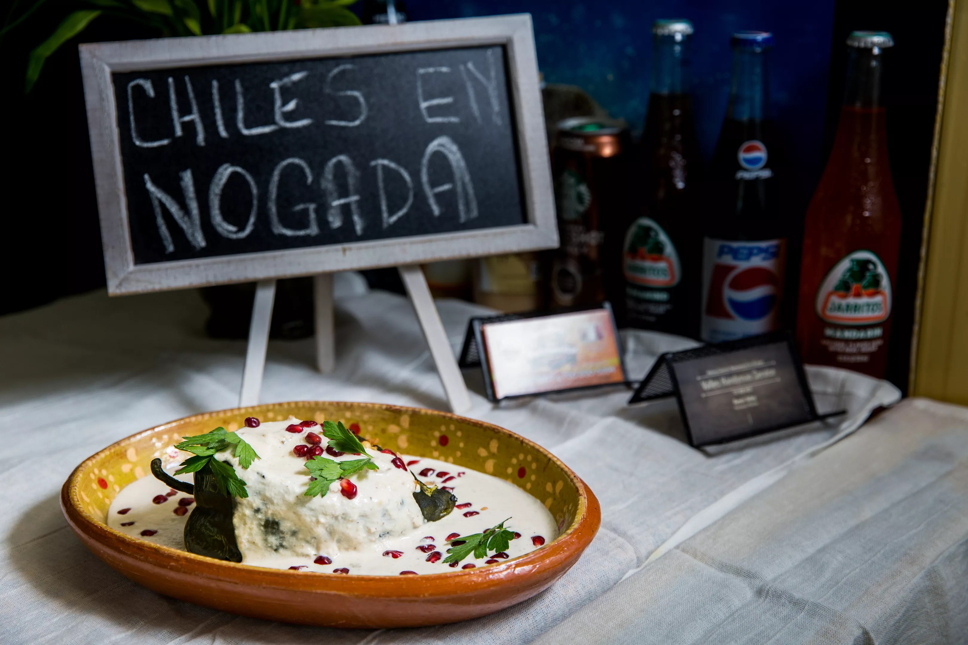 Other distinctly Pueblan dishes include memelas, thick corn tortillas topped with two kinds of salsa and crumbles of cheese; chiles en nogada, poblano chiles stuffed with picadillo and blanketed in walnut sauce; and plátanos fritos, fried plantains served here as dessert with a sauce similar to sweetened condensed milk. Chiles en nogada are a seasonal dish, often served in observance of Mexican Independence Day (September 16) because the colors mimic the Mexican flag (green poblano chiles, white salsa nogada and a sprinkling of red pomegranate seeds).
