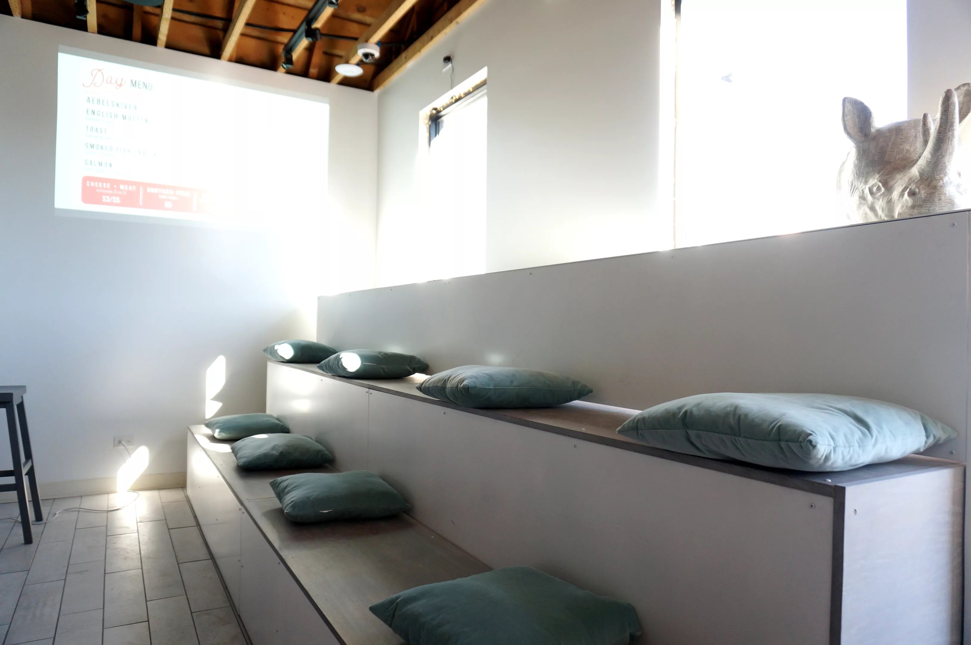 Sound complicated? Let’s return to that first peek inside Call. With a layout that’s almost entirely an open kitchen and coffee counter, the feel is more like being in a friend’s home kitchen as they prepare for a party. A narrow counter along one wall is a good spot for a cup of java and a quick bite to eat, while stacked bleacher seats along the front window provide a sunny perch where you can hang out a little longer.