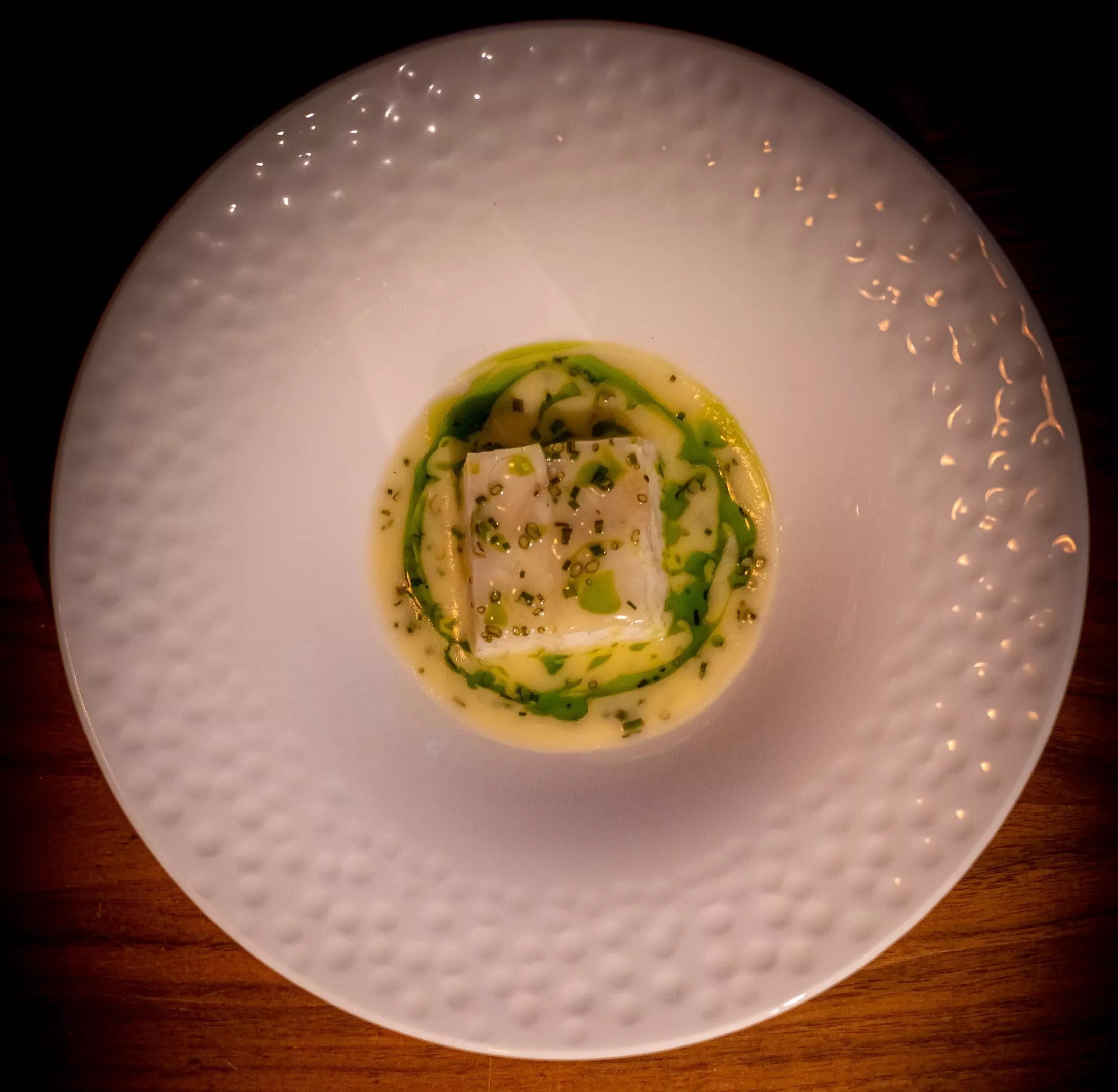 We actually just took this one off, but it’s celtuce, a local type of lettuce that is grown at one of our favorite farms, served with Kaluga caviar and cashew beurre blanc.