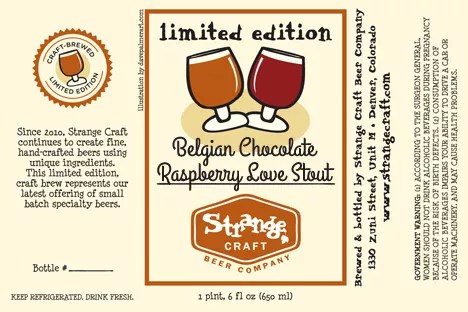 Strange Craft Beer Company will release just thirty cases of Belgian Chocolate Raspberry Love today. The beer, which honors both Stout Month and Valentine’s Day, “combines massive amounts of cacao nibs and raspberries into a roasty, barrel-aged imperial stout,” the brewery says. “After the initial impact of roast, dark chocolate, and fruit, notes of vanilla, oak, coffee, appear in the background. Love, at 10.9 percent ABV, will be available in bombers and draft.