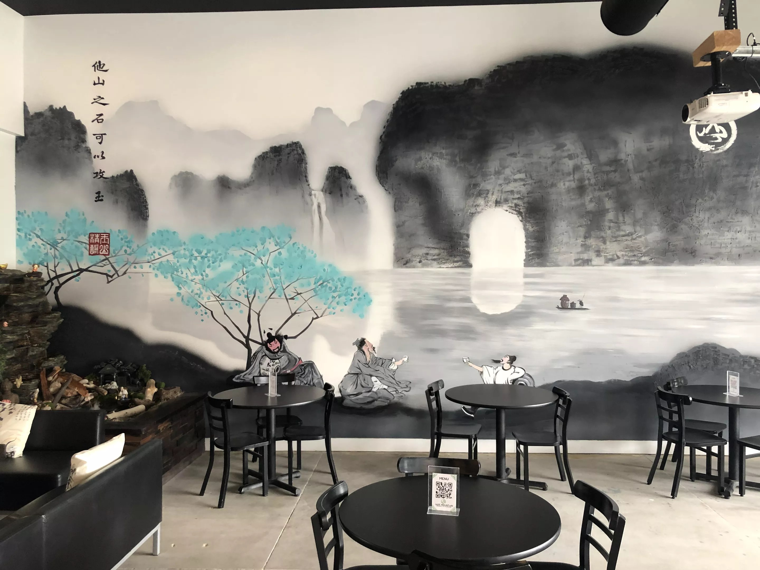 The writing on Jade Mountain’s mural reads, “The stone from the other mountain can polish jade.”