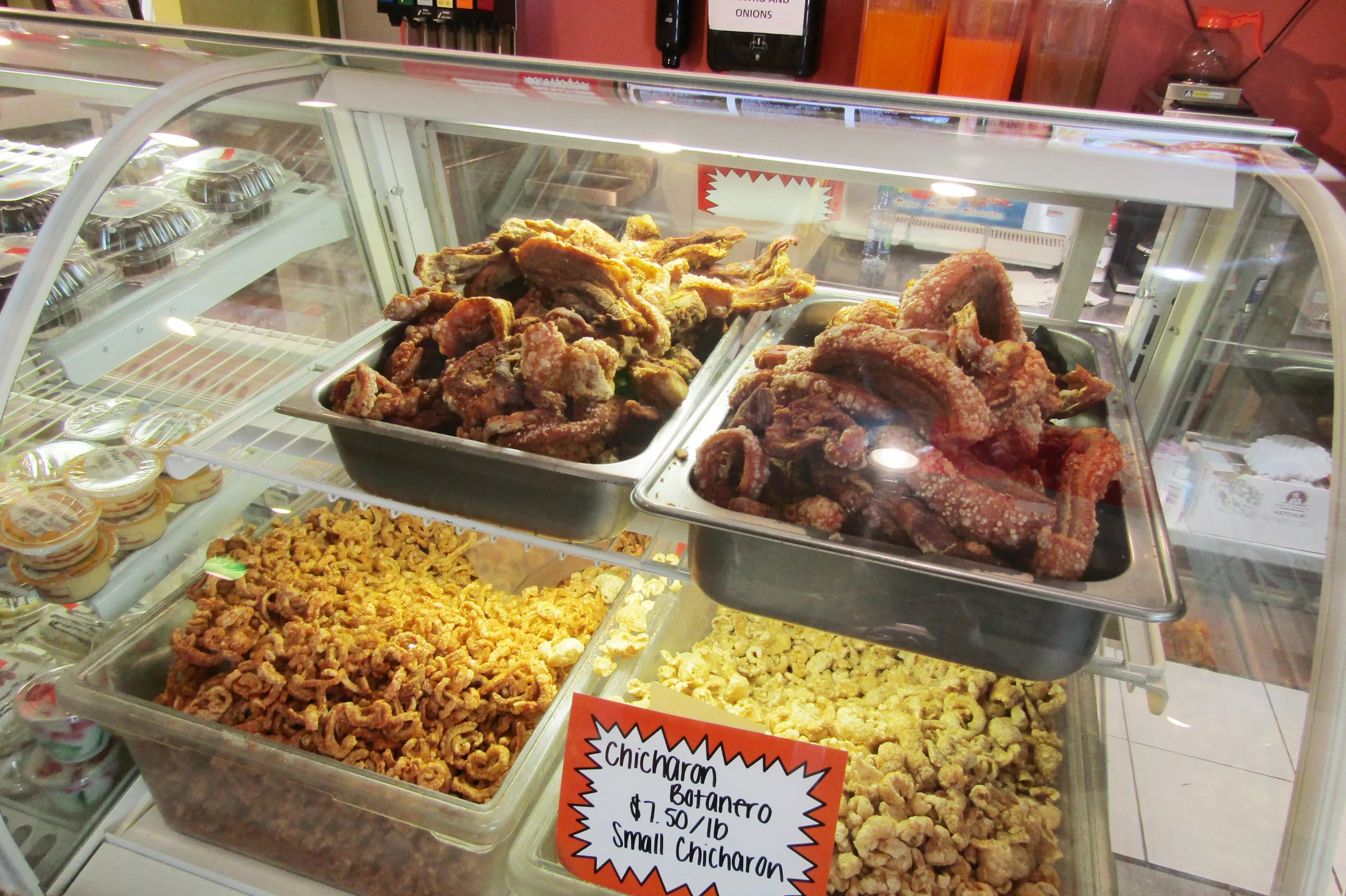 In addition to meat, the market is stocked with tortillas (some from a tortilleria the Beltrans founded and then sold), bulk items such as beans and chiles, a small selection of produce, and a wide range of Mexican beverages, snacks and staples. There are also no fewer than three bins filled with chicharrones in different sizes: small curls seasoned with chile powder, larger pieces for snacking and enormous slabs that could feed a family for days.