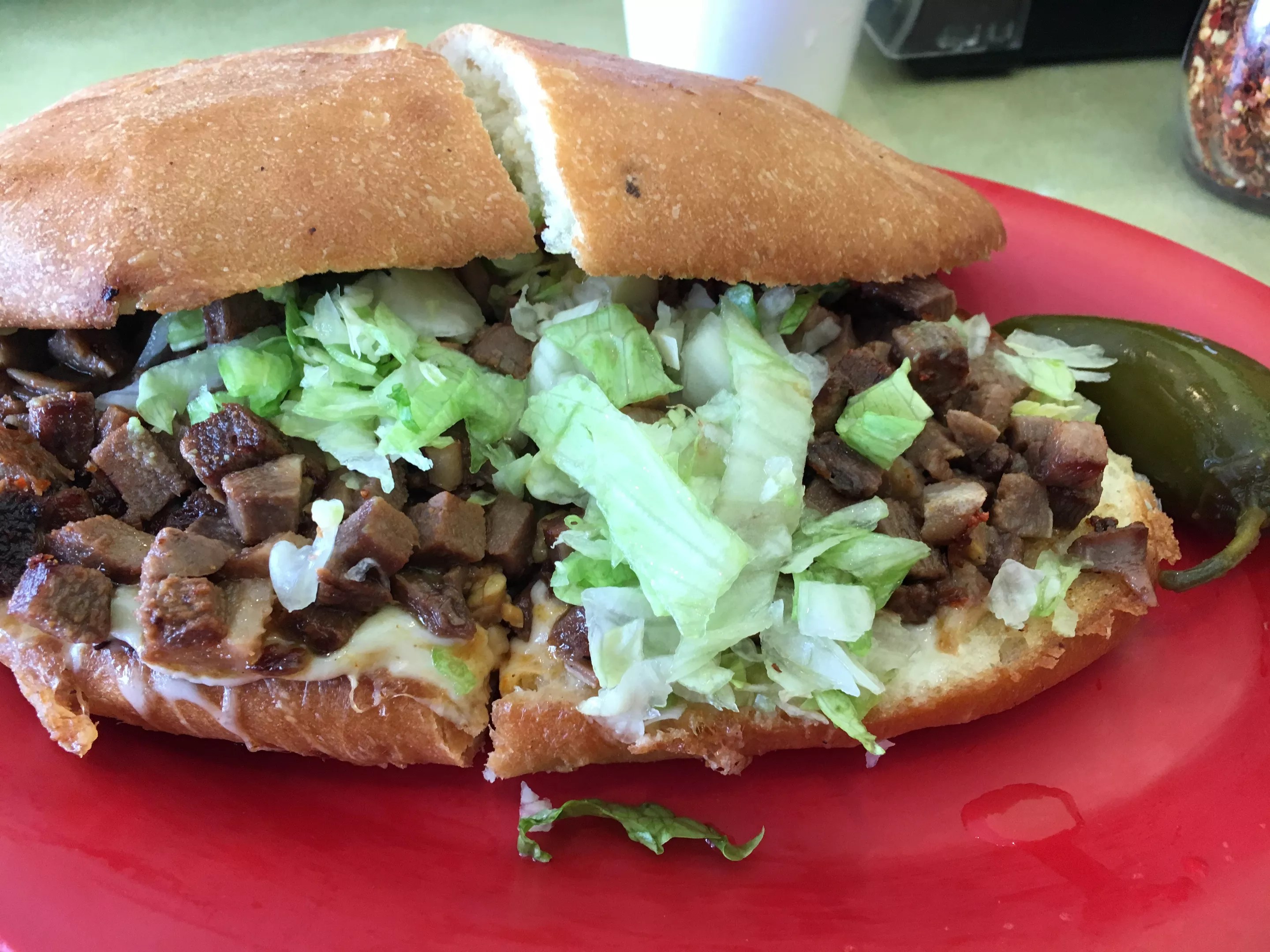Beltran’s opens every morning at 8 a.m., serving breakfast burritos and tacos right off the bat. “The most important thing is that we’re not a fast-food restaurant,” Valerie explains. If you order your burrito with chorizo, for example, that chorizo was ground and seasoned by the shop’s butcher. She notes that her family has been in the region dating back several generations – “since before this was even a state” – so native Coloradans will find the green chile they love, along with Mexican hamburgers and other Den-Mex fare. The kitchen also makes big batches of menudo and pozole every day, unlike many other eateries that only offer the soups on weekends. Tortas, tamales, quesadillas and daily specials (like a caldo de camarones that popped up earlier in the week) round out the menu. Even the horchata and jamaica are made from scratch, not powdered mixes.