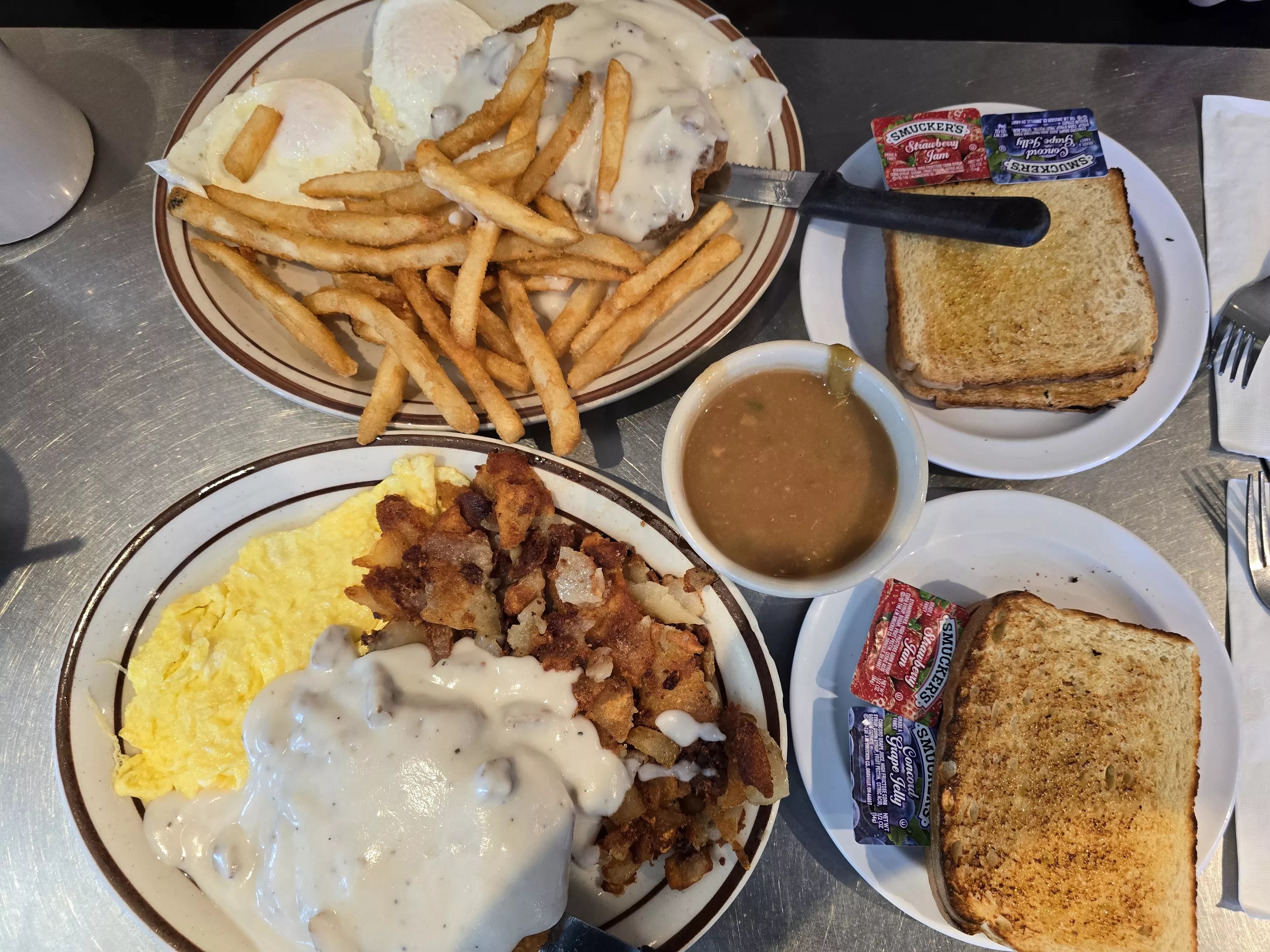 A chicken-fried spread at Pete’s.