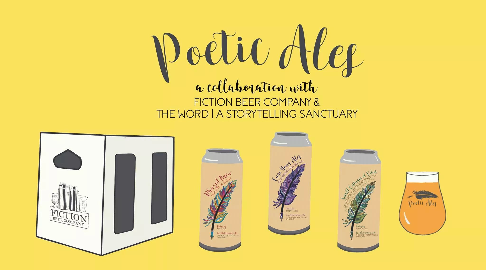 Fiction Beer Company has teamed up with The Word | A Storytelling Sanctuary on a collaborative beer-and-poetry project called Poetic Ales. The brewery will release three canned beers in a limited-edition boxed set (as well as on draft and in sixteen-ounce four-packs); each can will feature a poem by a BIPOC poet who is a member of the Word, a nonprofit organization that “fights for cultural equity through the literary arts” and “promotes voices from underserved communities and diverse backgrounds.” A portion of the proceeds from the beers will go to support the Word. Here are the planned releases: Small Gestures of Vibes, a hazy IPA made with Nelson Sauvin, Galaxy and Wai’iti hops, with poetry from Franklin Cruz; Phazed Brew, a molé milk stout brewed with Mexican chile peppers and spices, with words by Kerrie Joy; and Cure Your Ales, a purple ale made with elderberries, Hallertau Mittlefrueh and Sorachi Ace hops, with a poem by Deborah Yang. The poets are all responding to the theme of “the In Between, reflecting this middling period of the pandemic and this time of conscious awakening on equity issues,” according to the brewery.