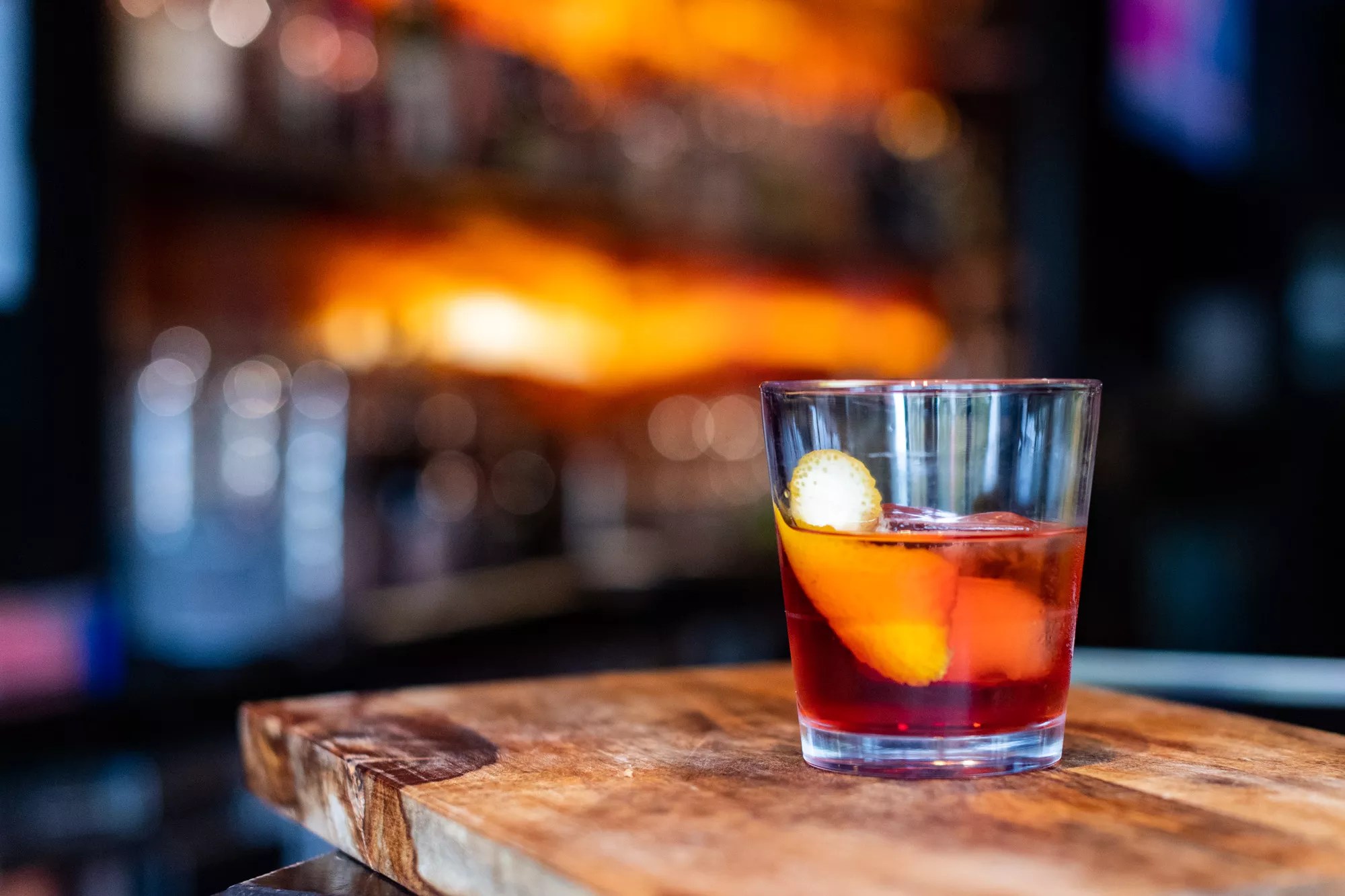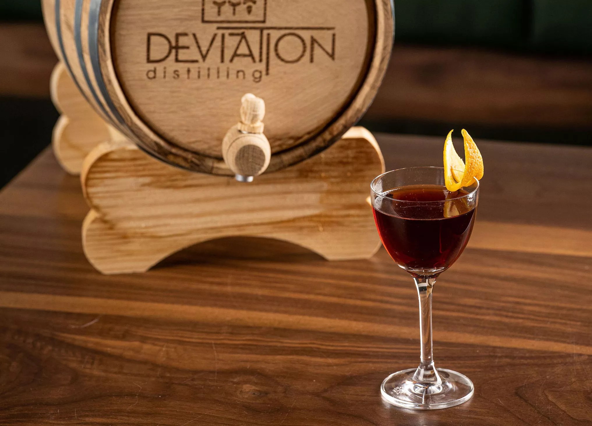 Barrel-aged Negroni at Deviation Distilling’s tasting room downtown.