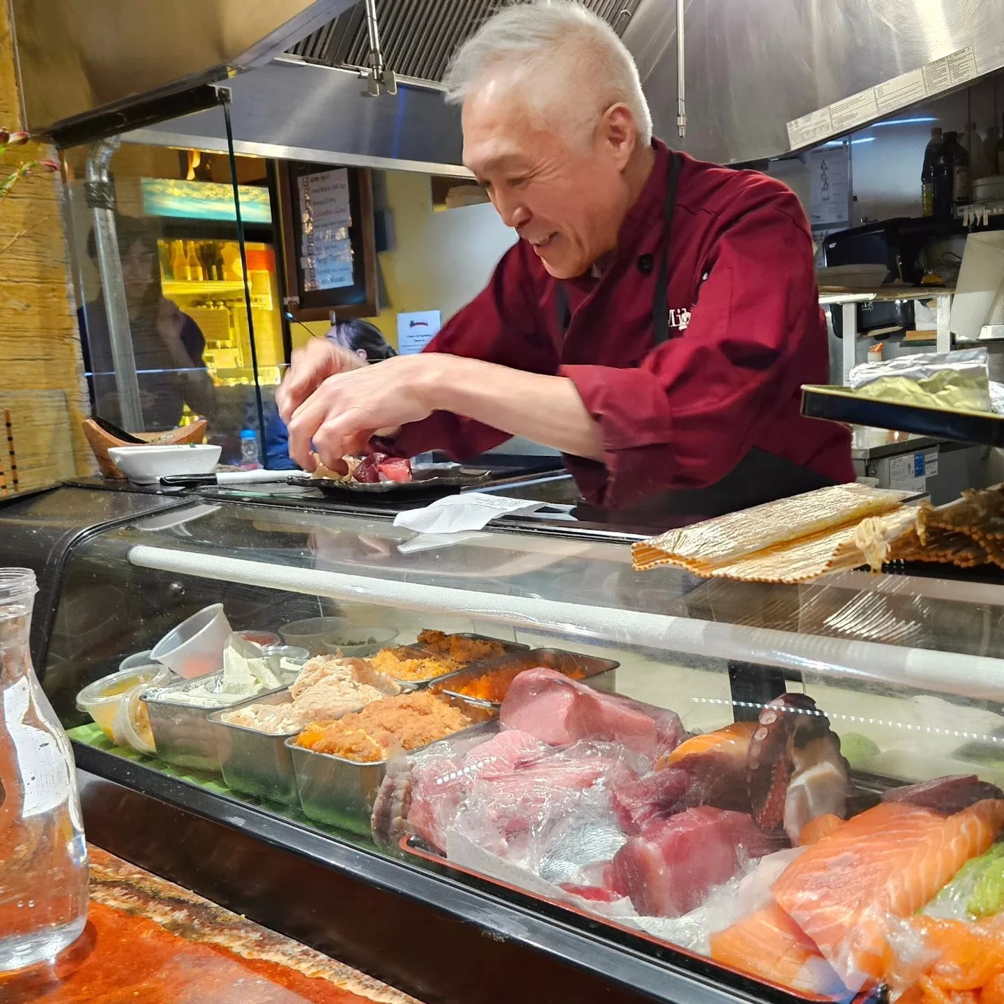 Miki Hashimoto making sushi at his lively restaurant, Tokio.
