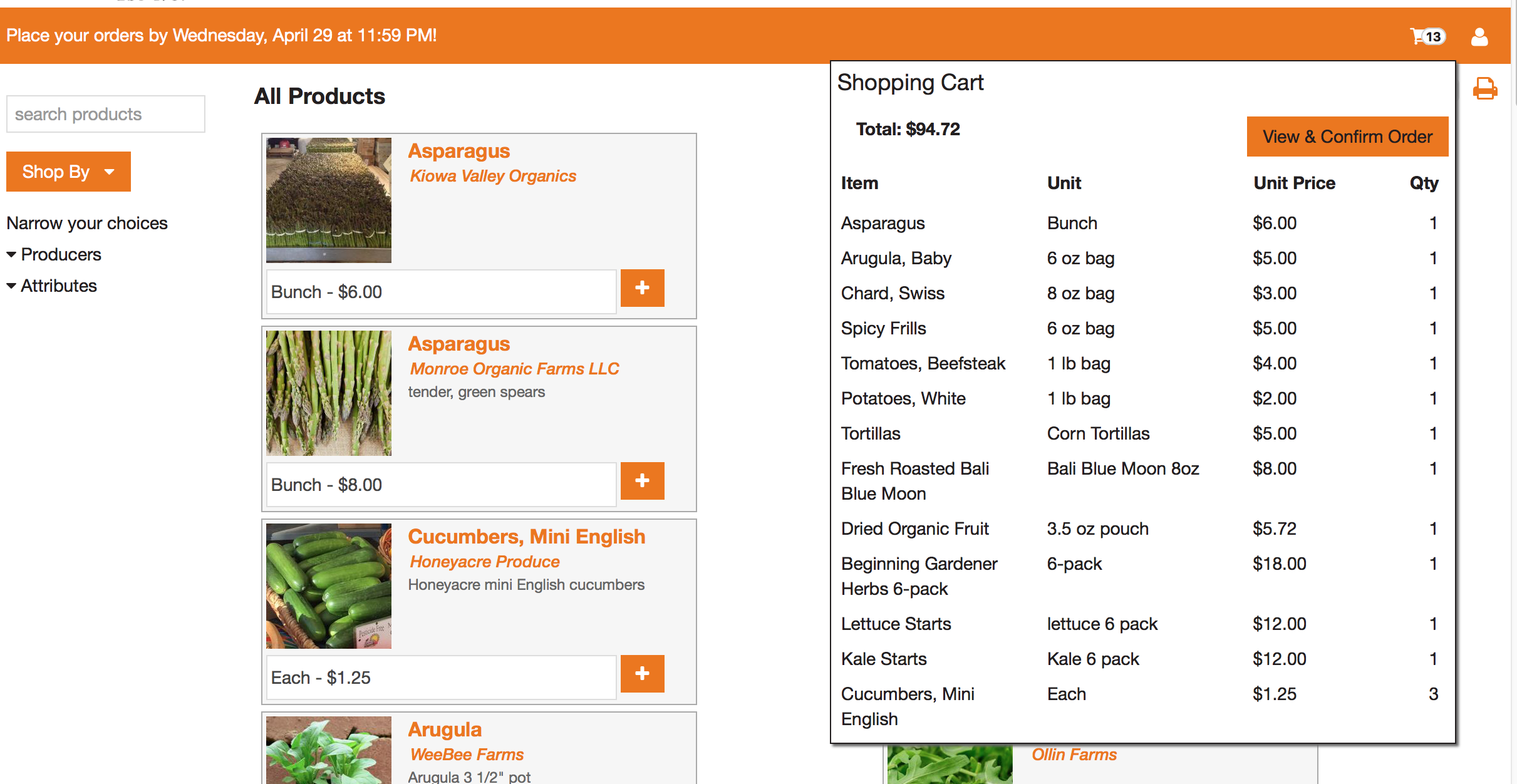 Order a batch of fresh vegetables, coffee, plants and more from the BCFM website, bcfm.localfoodmarketplace.com, for pick-up next Saturday, May 9. Pick-up times are between 11 a.m. and 2 p.m. at the fairgrounds where the Longmont farmers’ market is usually held, at 9595 Nelson Road in Longmont.