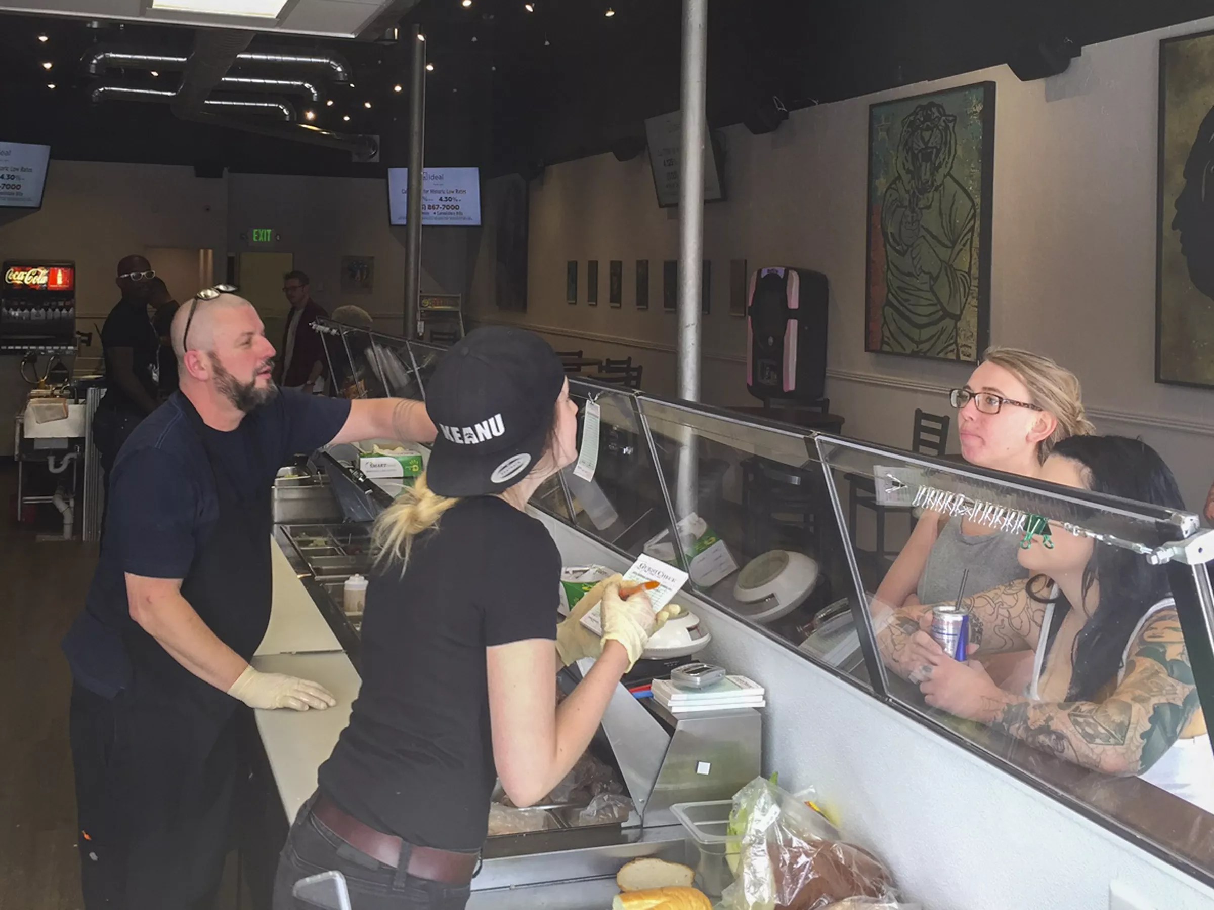 Co-owner Brett Neilley serves customers at his new restaurant, Broadway Deli, located at 8 South Broadway.