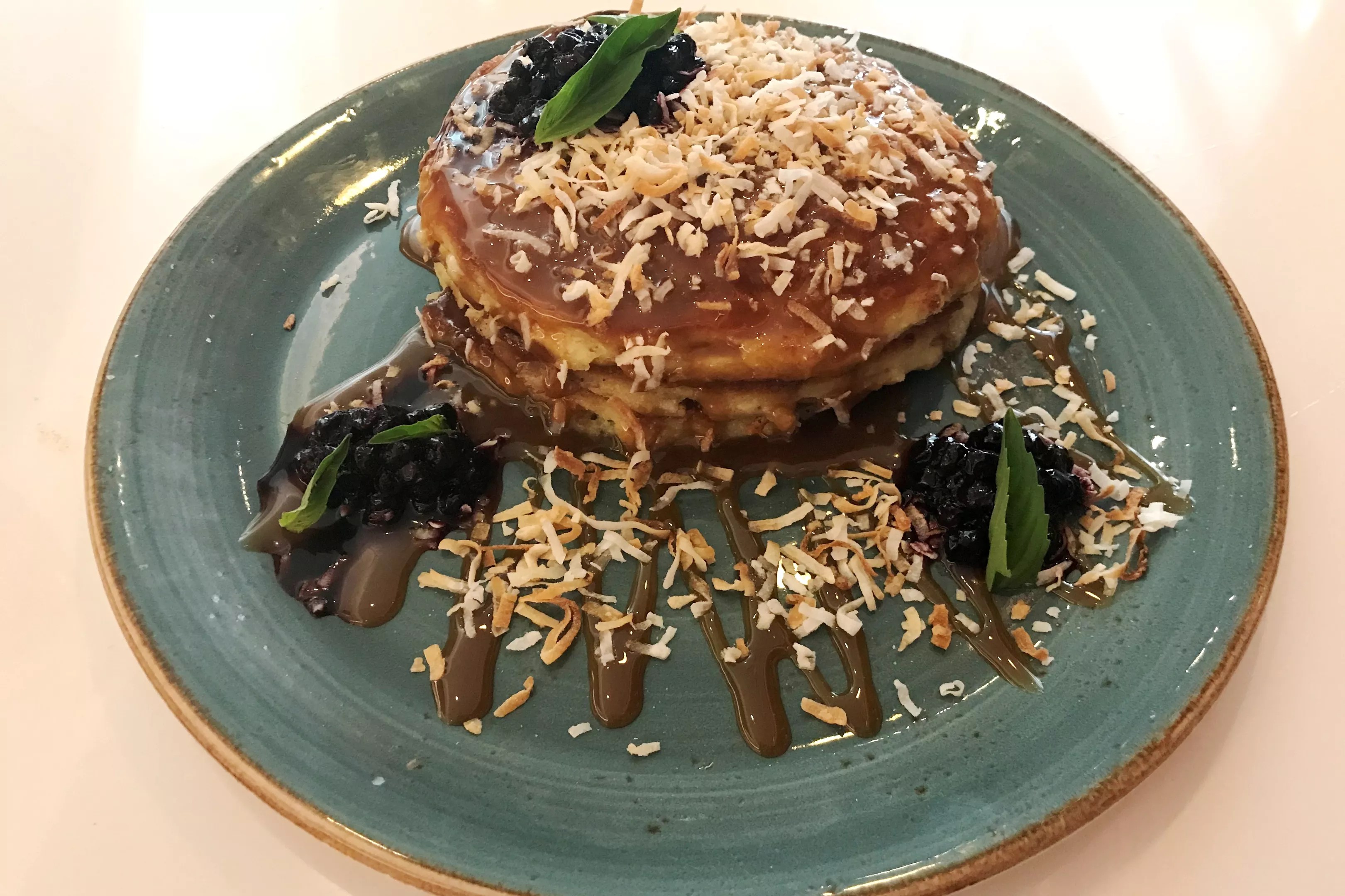 Departure’s coconut pancakes contain no gluten or dairy.