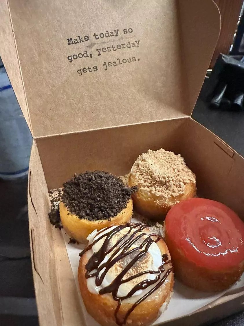 So I caught up with Morton to learn more about his business. “I just want to make people happy,” he says, which is why he stamps every one of his cake boxes with a quote that he holds dear to his heart: “Make today so good, yesterday gets jealous.”