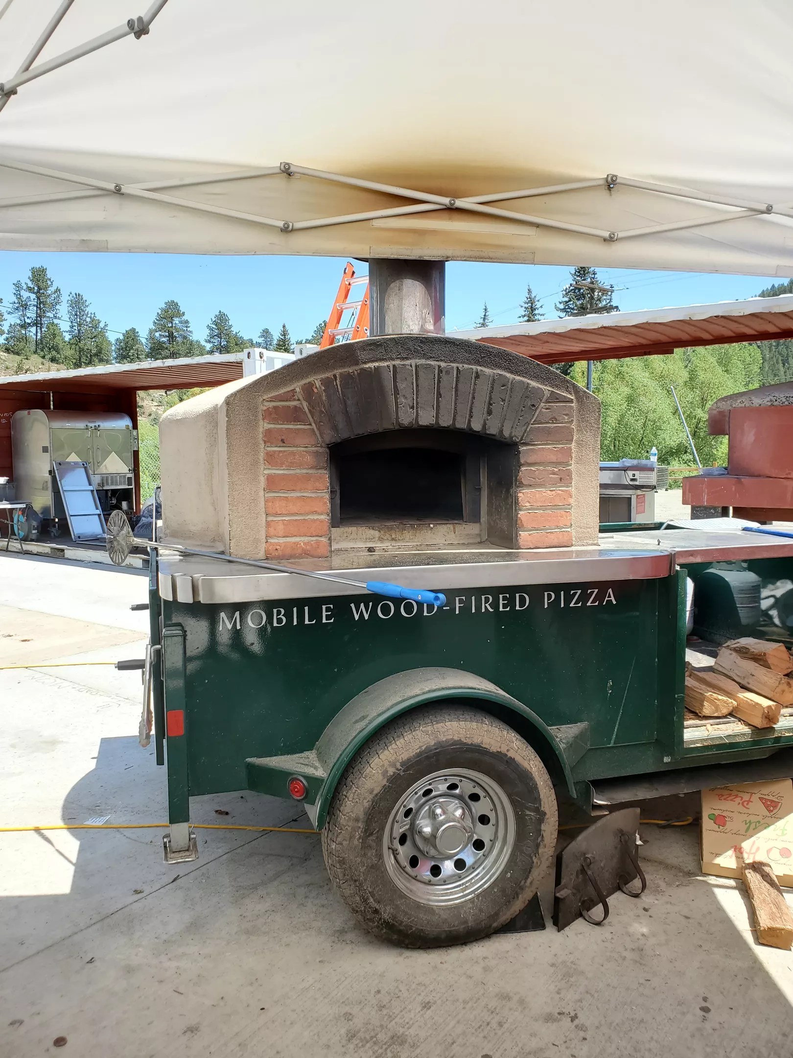 A whole lot of pizzas have already been cooked in this mobile wood-fired oven.