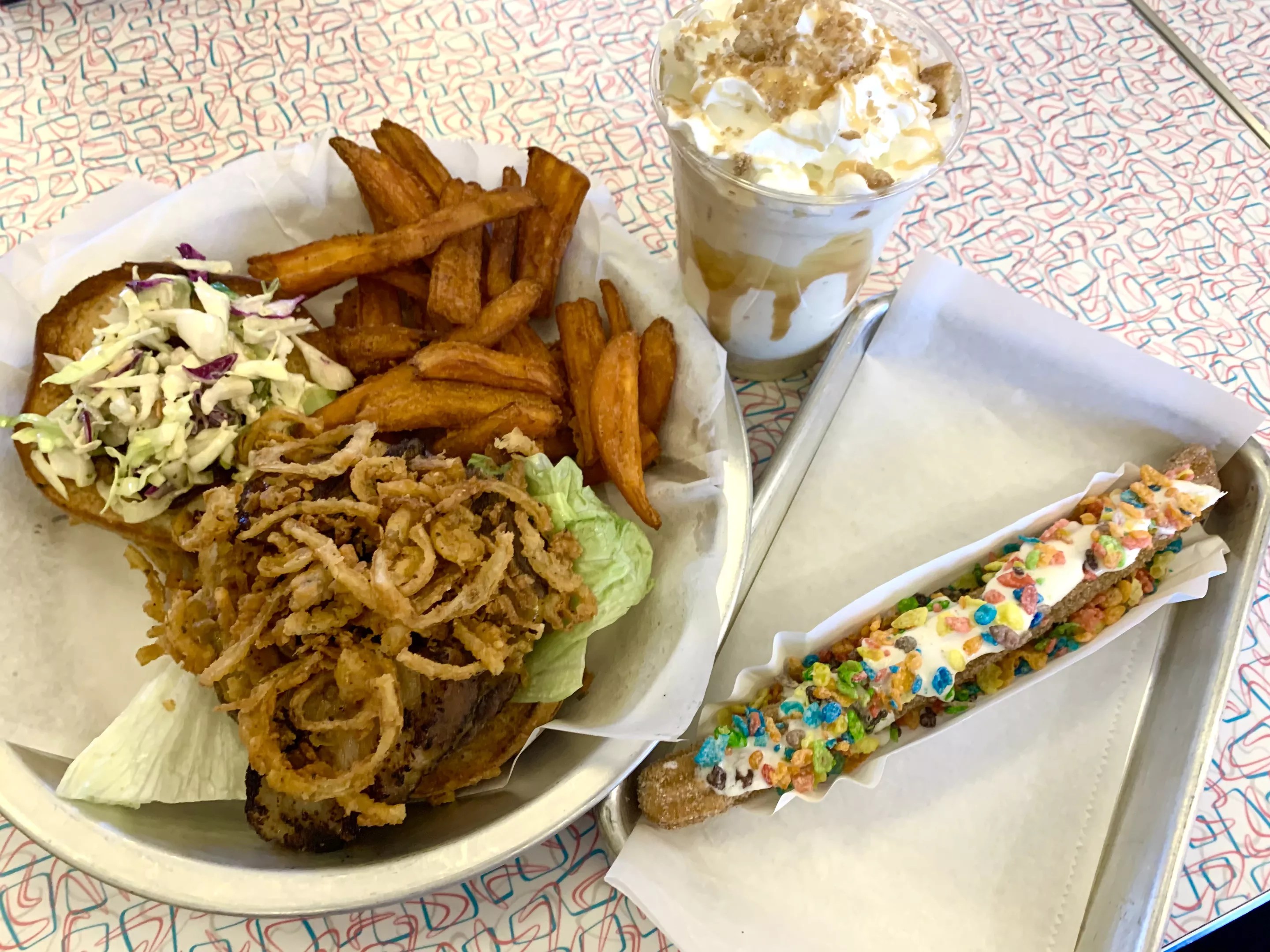 The churro shake and Fruity Pebbles churro pair well with the Bonnie Brae burger.