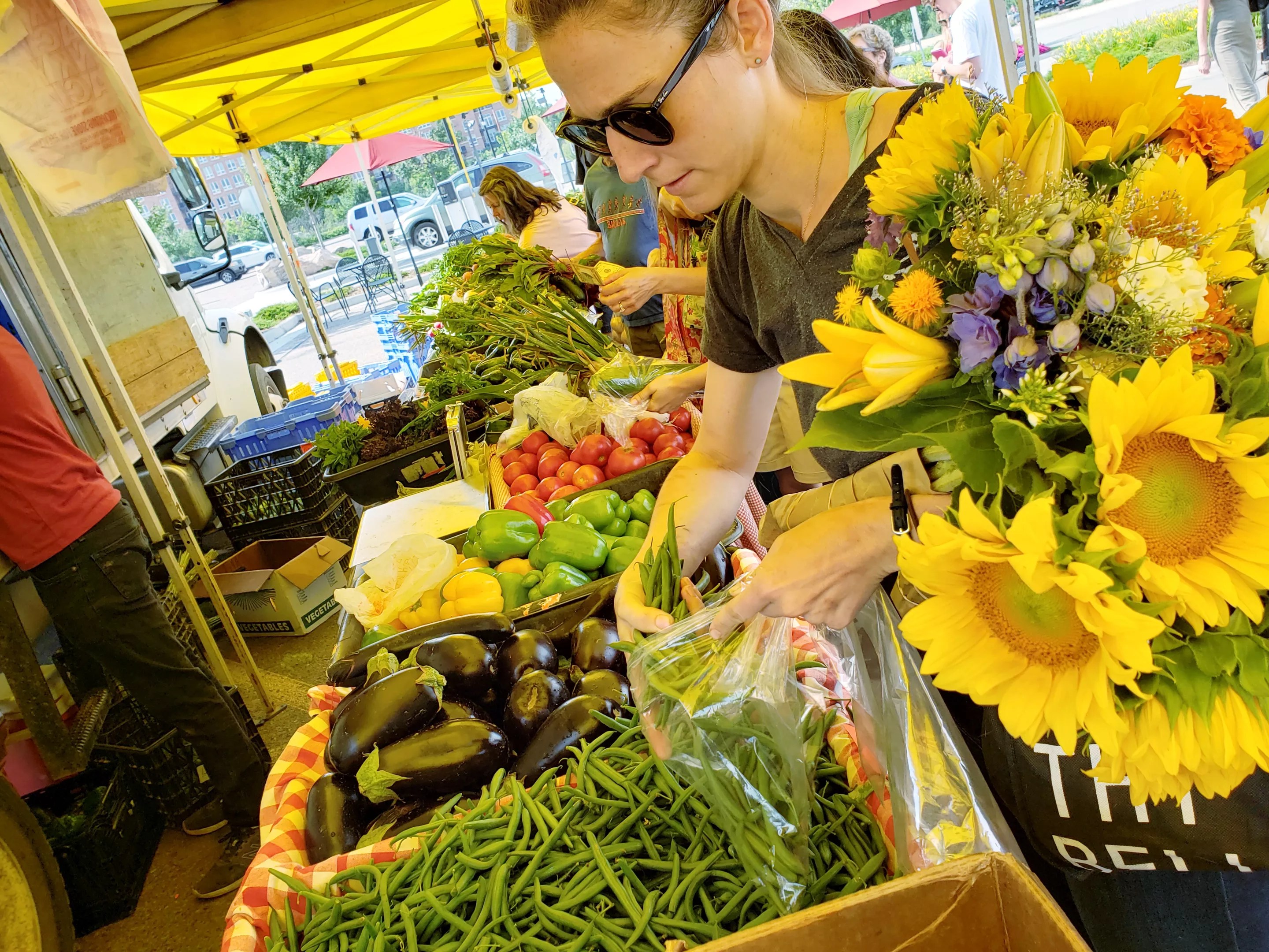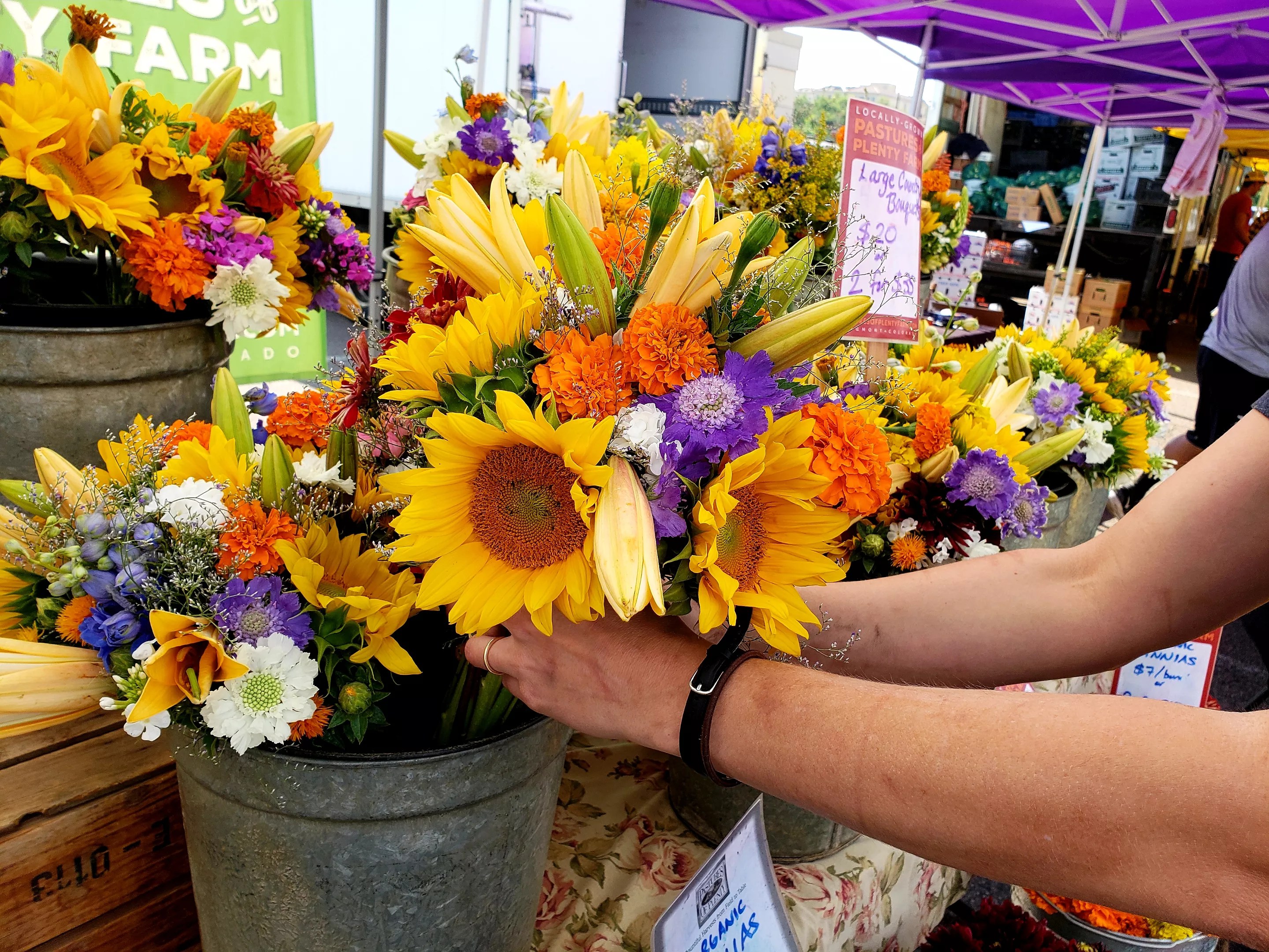 Picking up flowers from the Cherry Creek Farmers’ Market.