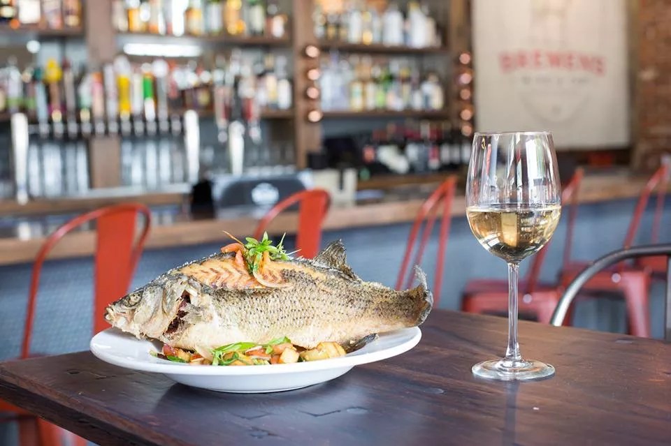 Bremen’s whole bass with sweet potato hash.