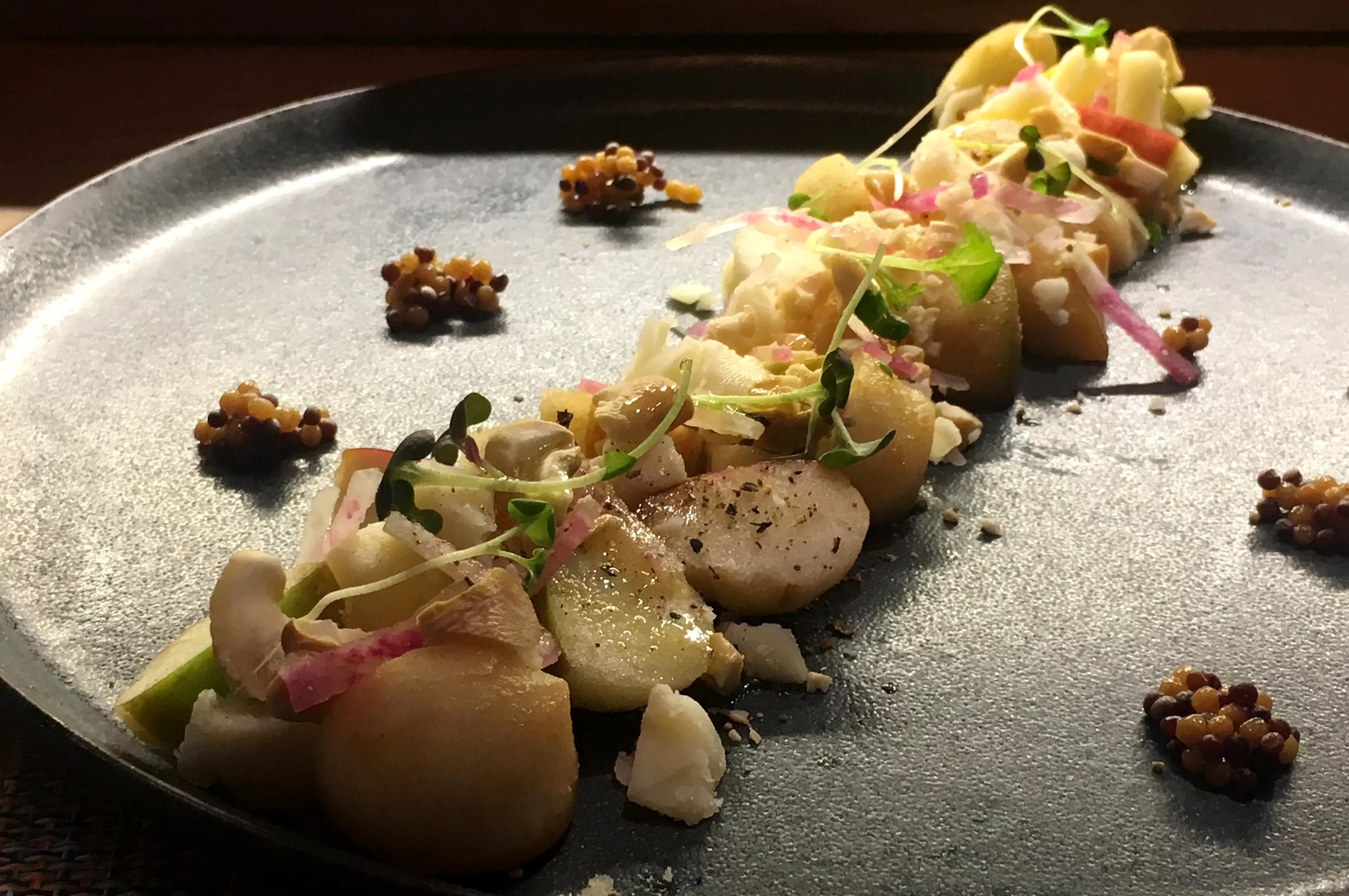Chef Toby Prout signed on as chef de cuisine at 12@Madison nine months ago, and he’s putting his mark on the restaurant’s ever-evolving menu, adding dishes that oscillate between bold and subtle, creative and comforting. No longer strictly tied to the number twelve, chef/restaurateur Jeff Osaka has expanded the eatery’s offerings to a current eighteen small plates and three large-format entrees, giving Prout more opportunity to shine.