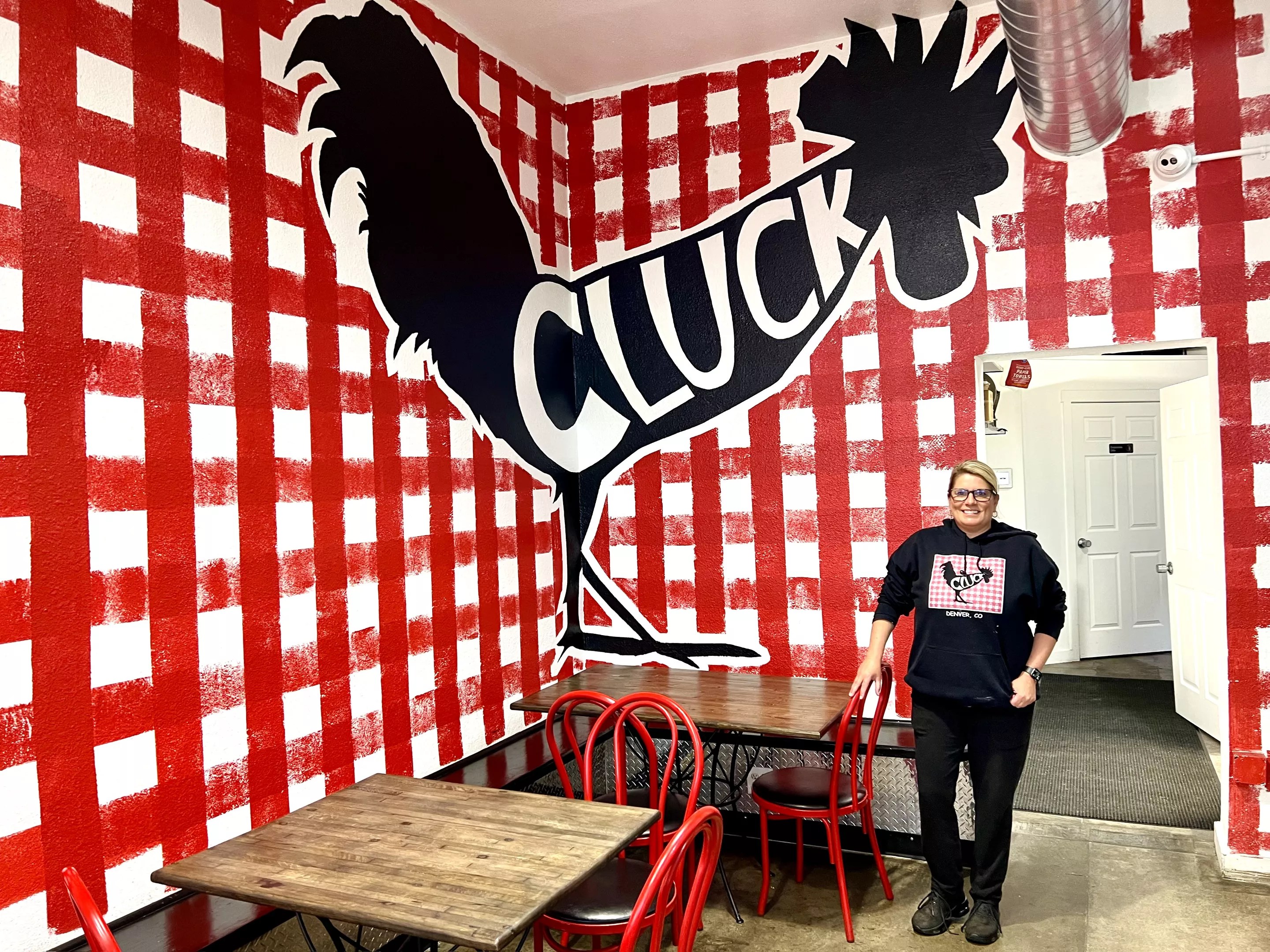 I’m sitting next to a larger-than-life painting of a chicken with Rachael Hebel, discussing Southern stuff like the latest season of SEC college football and our grandmothers’ methods of frying chicken in cast iron. The owner of Cluck Chicken is the picture of relief as she chats in her restaurant at 1384 South Broadway, which opened last August after many unexpected delays.