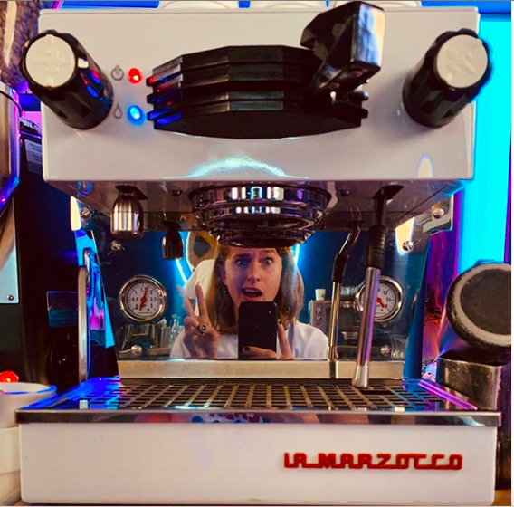 Coffee Kat behind the bar on a recent trip exploring coffee in Mexico City. The trip was cut short because of the pandemic.