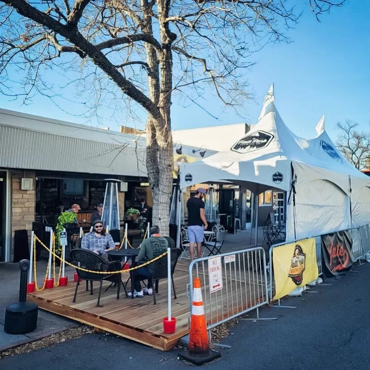 Platt Park Brewing not only has a temporary patio that extends into Pearl Street — allowed as part of the city’s pandemic response — but it just added an open-sided tent that covers the whole thing, complete with heaters. Jonathan Shikes