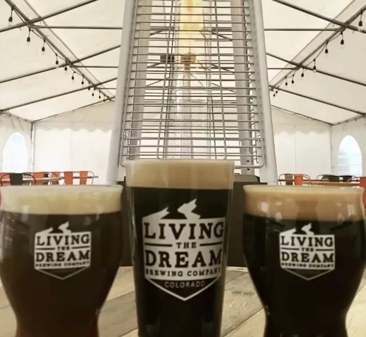 Golden’s 100 percent gluten-free brewery, Holidaily Brewing, has a big open-side tent with festive lights, socially distanced tables and flickering fire pit. Living the Dream Brewing