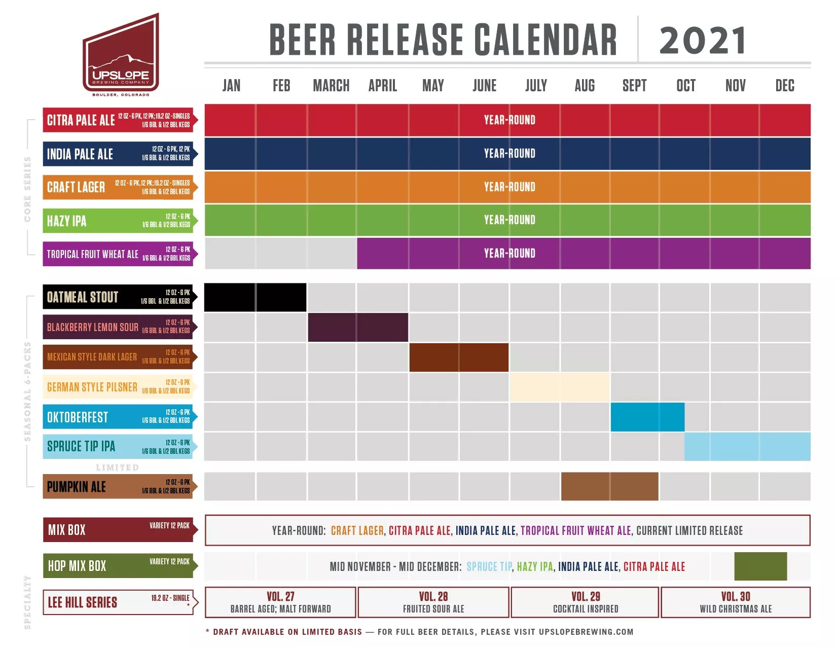 Powder Run: Horchata Upslope’s 2021 Beer Release Calendar shows several new offerings. Upslope Brewing
