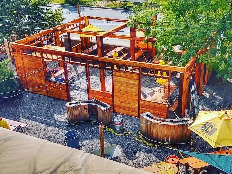 Woods Boss Brewing pivoted with this temporary patio on California Street.